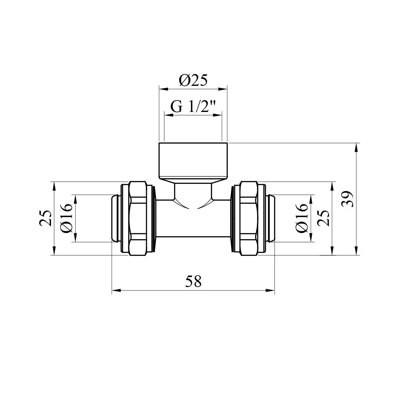 Характеристики Тройник металлопластиковый STA DN 16x1/2 РВ код товару CV008482
