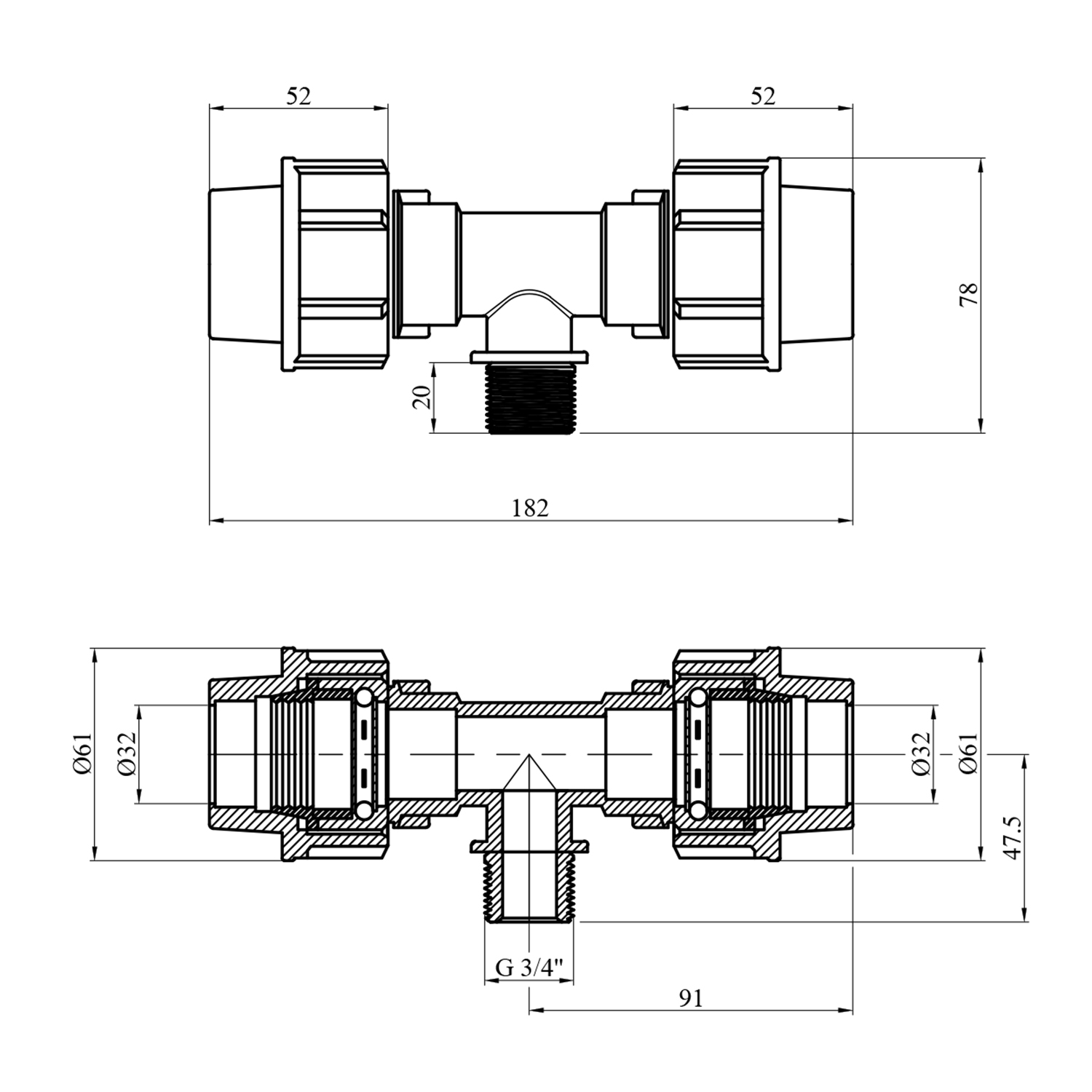 Описание Тройник ПЭ Rozma 32х3/4х32 РН код товару CV023364