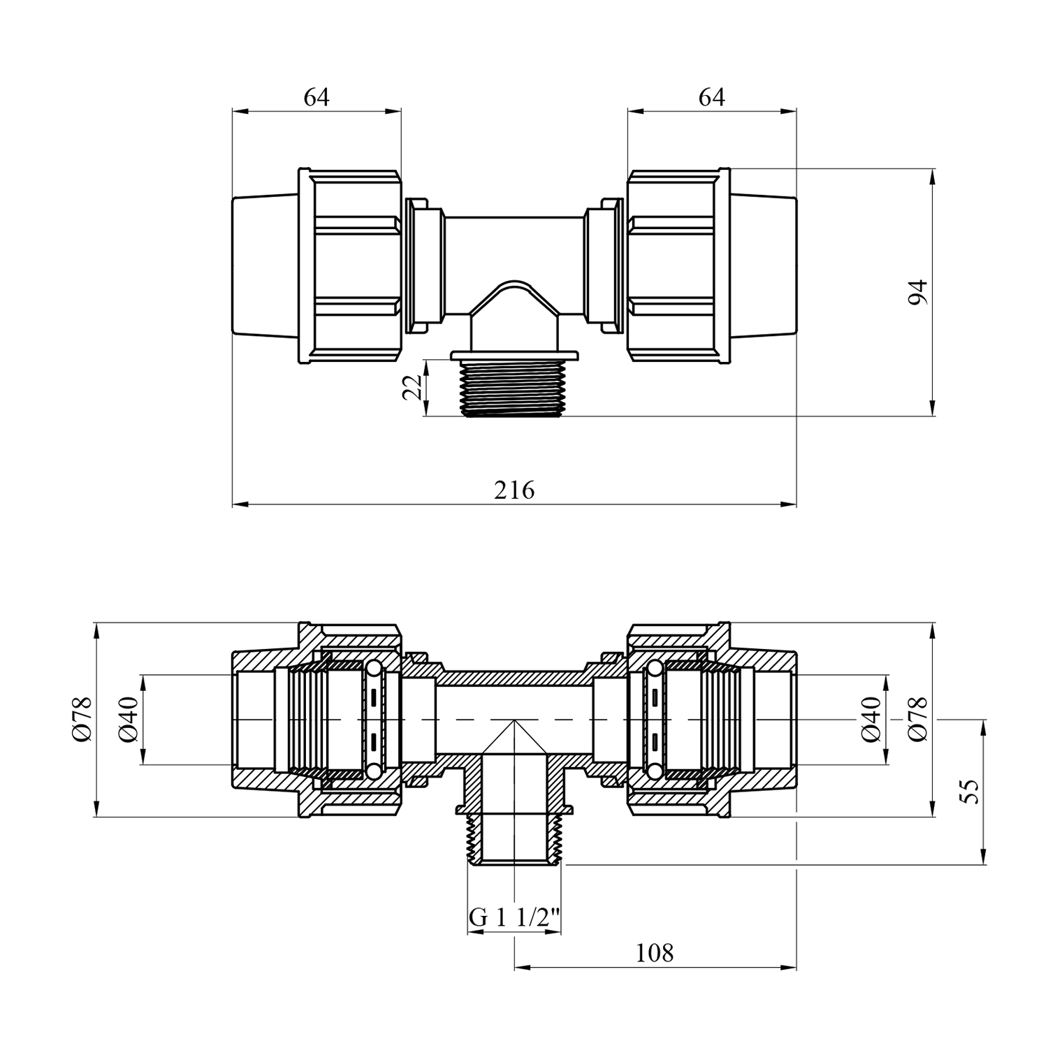 Характеристики Тройник ПЭ Rozma 40х1 1/2х40 РН код товару CV023437