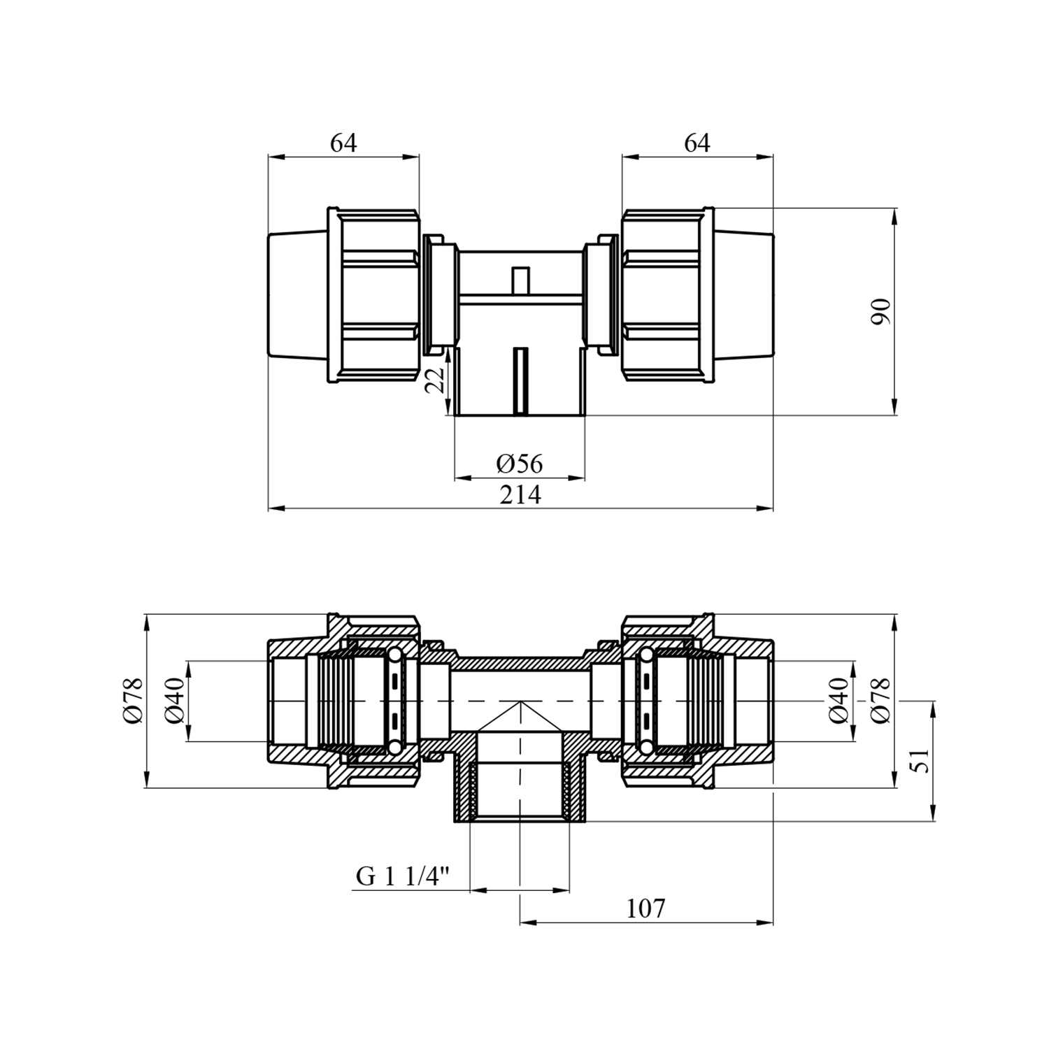 Тройник ПЭ Rozma 40х1 1/4х40 РВ