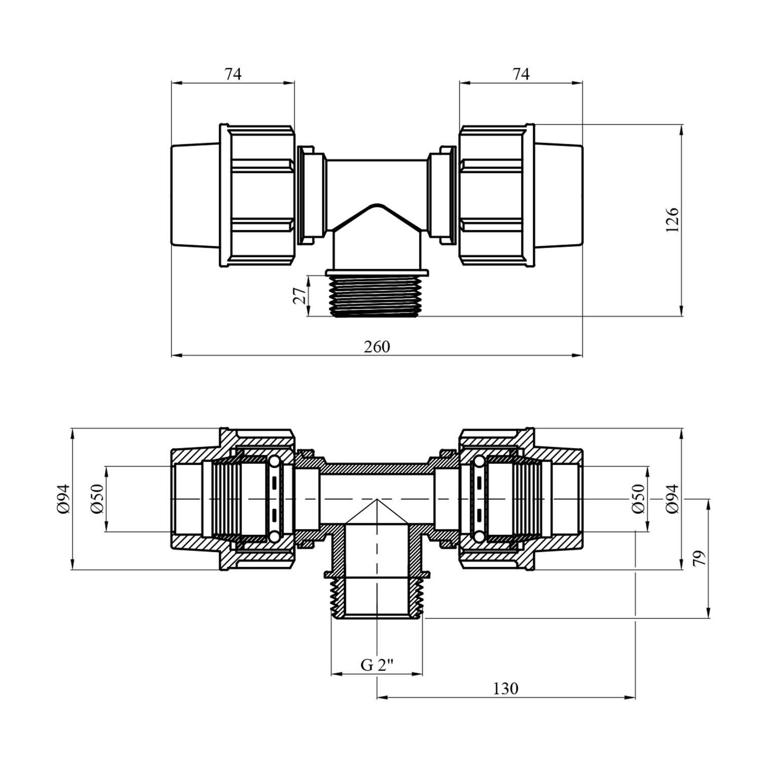Характеристики Тройник ПЭ Rozma 50х2х50 РН код товару CV023465