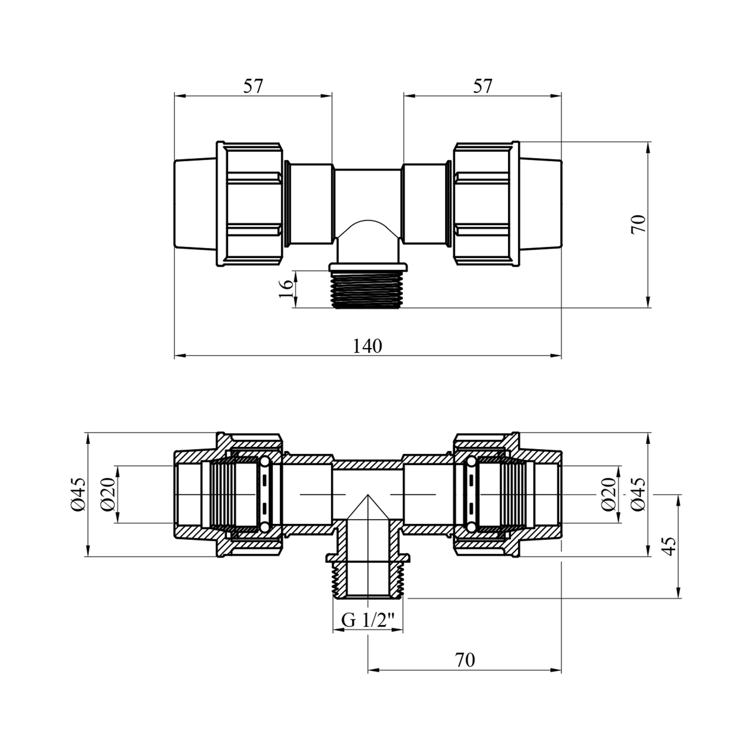 Описание Тройник ПЭ SantehPlast 20х1/2"х20 РН код товару CV014736