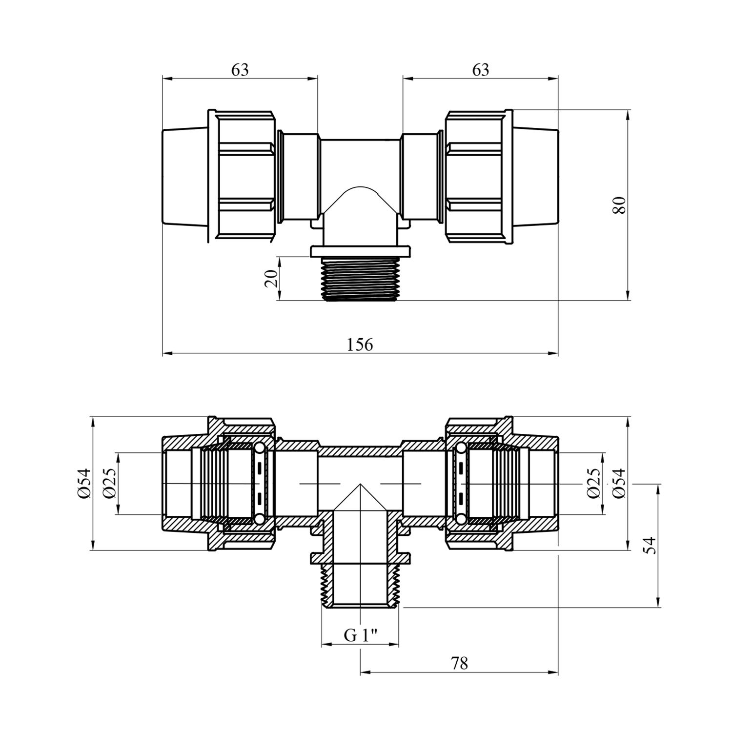 Характеристики Тройник ПЭ SantehPlast 25х1"х25 РН код товару CV019620