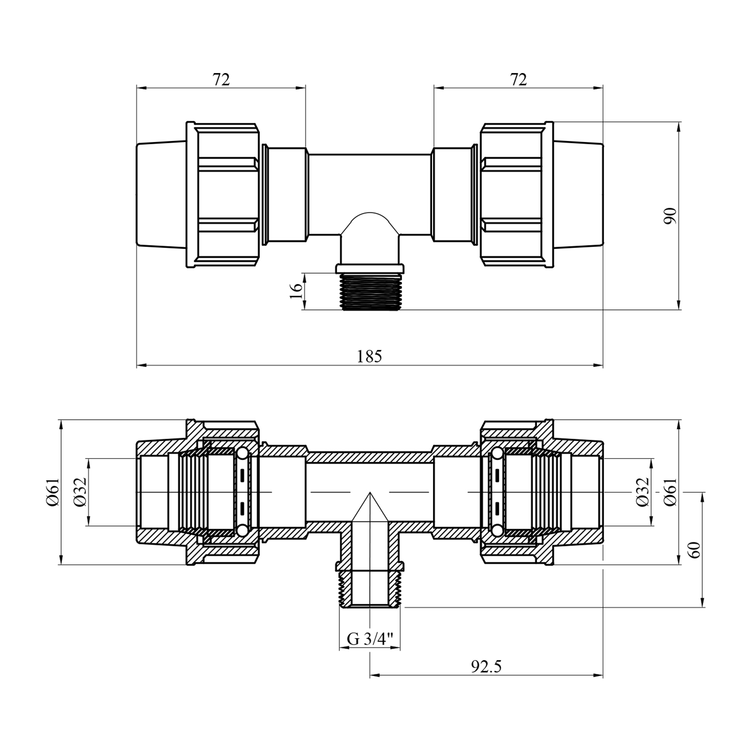 Характеристики Тройник ПЭ SantehPlast 32х3/4"х32 РН код товару CV022469