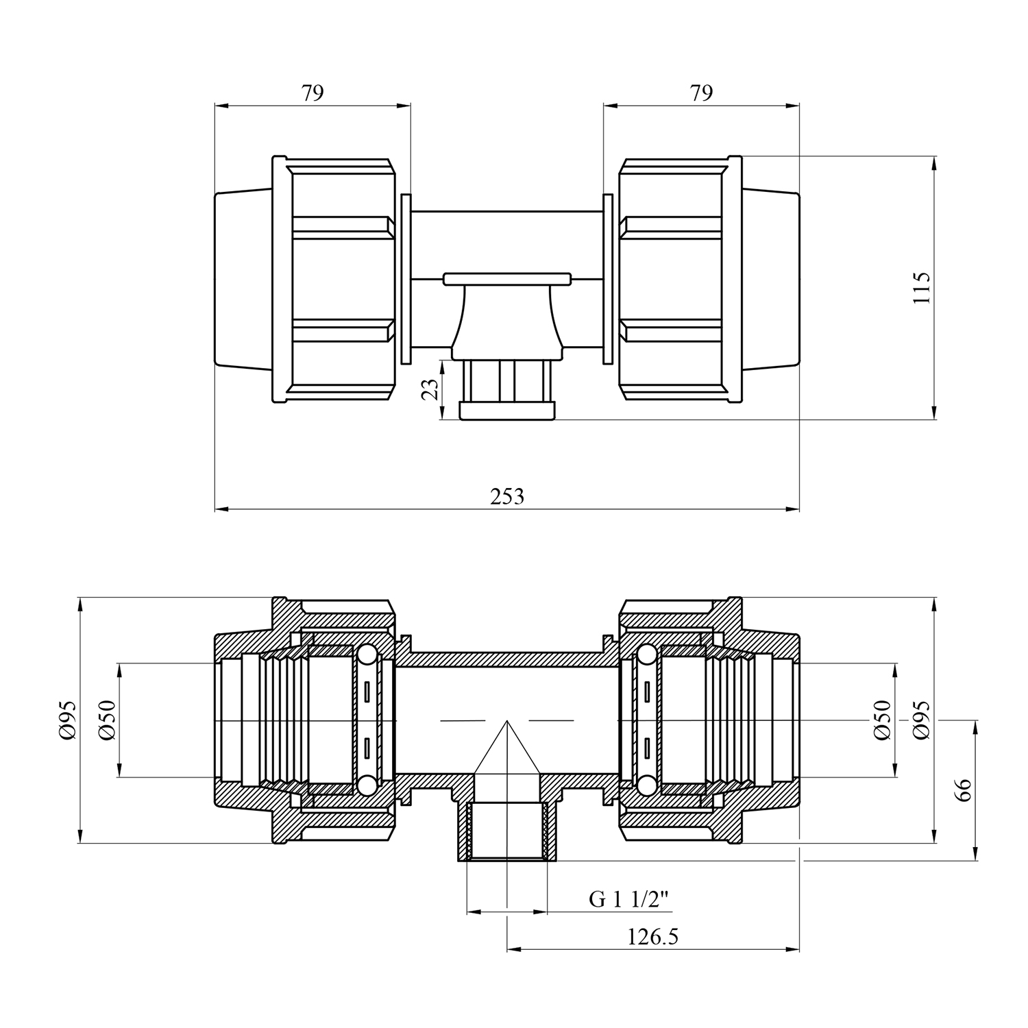 Характеристики Тройник ПЭ SantehPlast 50х1 1/2"х50 РВ код товару CV020528