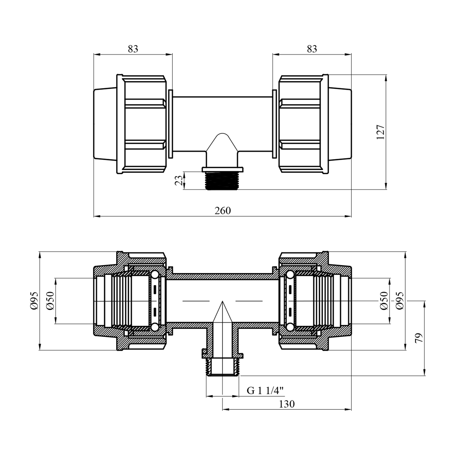 Характеристики Тройник ПЭ SantehPlast 50х1 1/4"х50 РН код товару CV020529