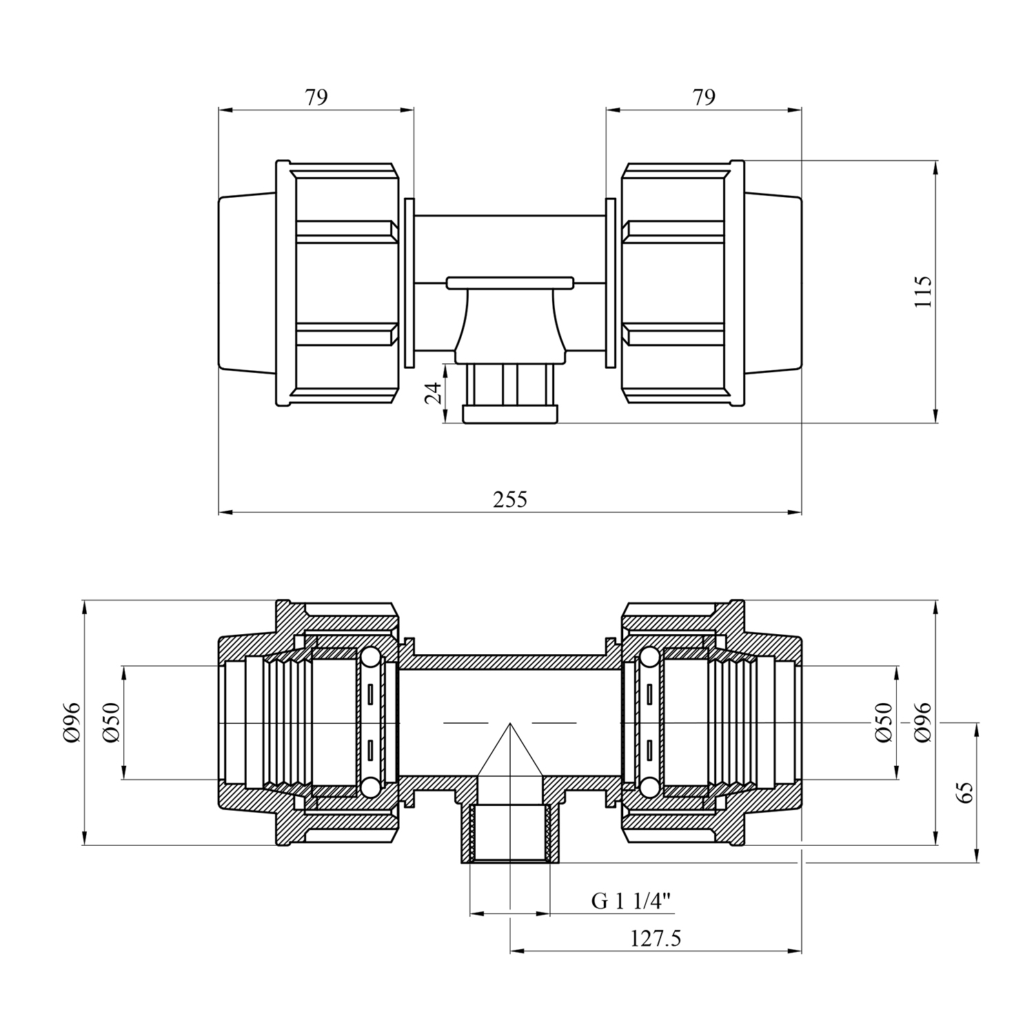 Характеристики Тройник ПЭ SantehPlast 50х1 1/4"х50 РВ код товару CV020432