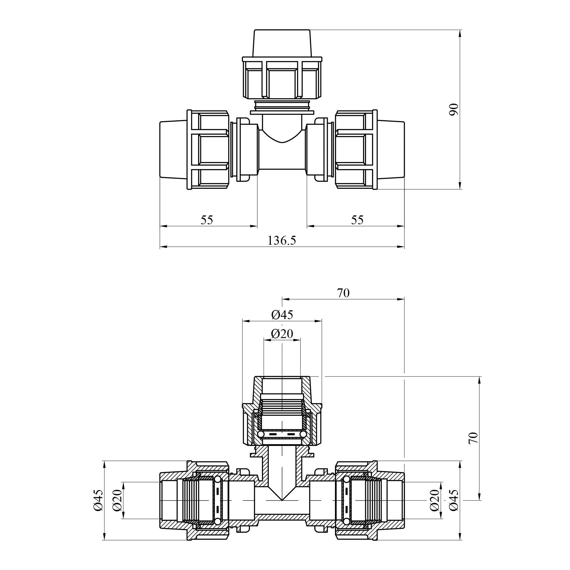 Характеристики Тройник ПЭ 20 мм, STR код товару CV028627