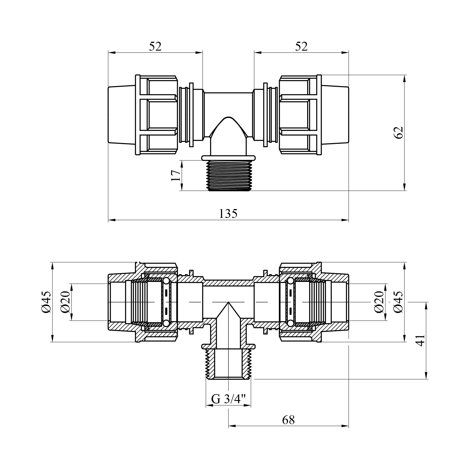 Описание Тройник ПЭ STR 20х3/4х20 РН (до 70 символов) код товару CV028638