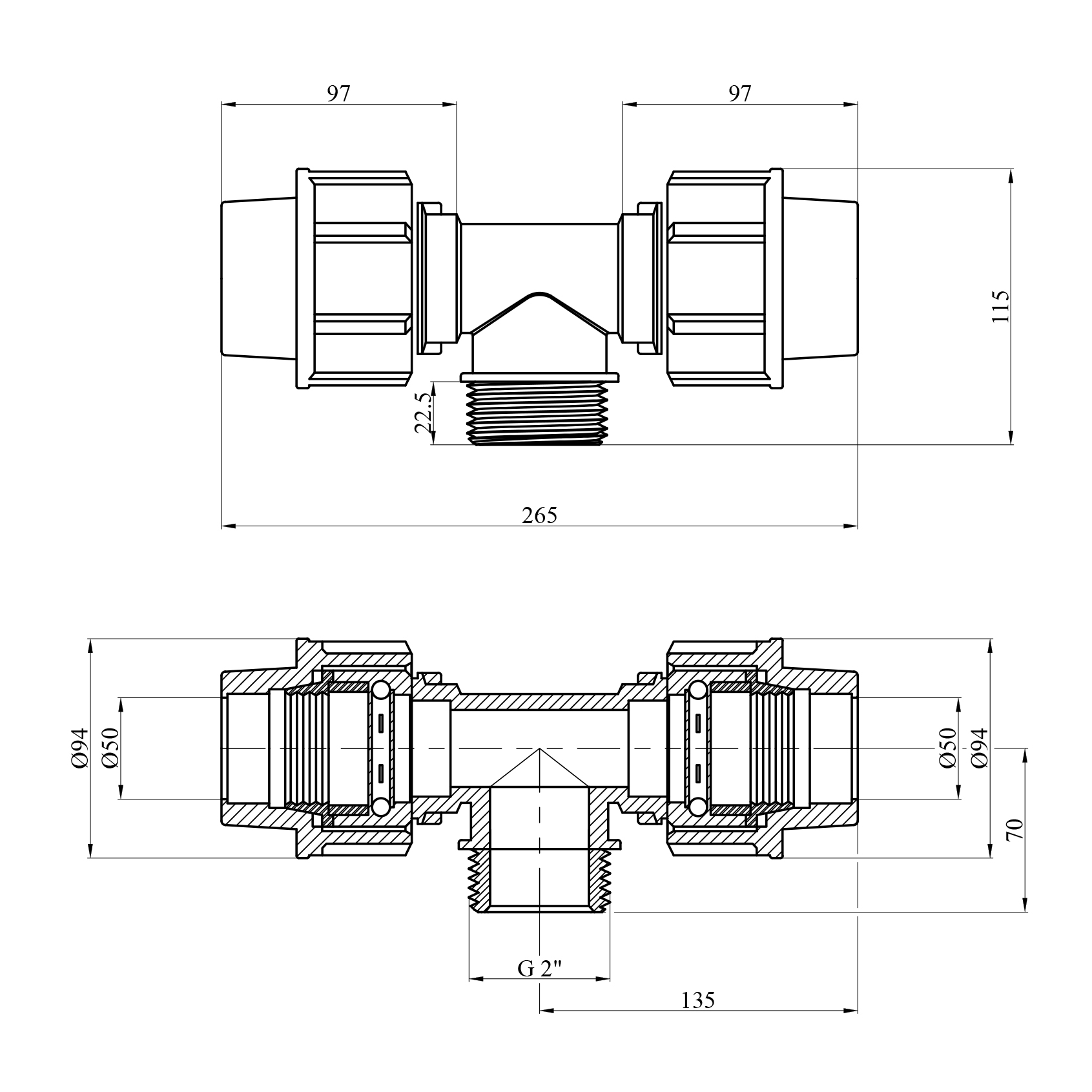 Характеристики Тройник ПЭ 50 мм, 2 выхода, РН код товару CV028648