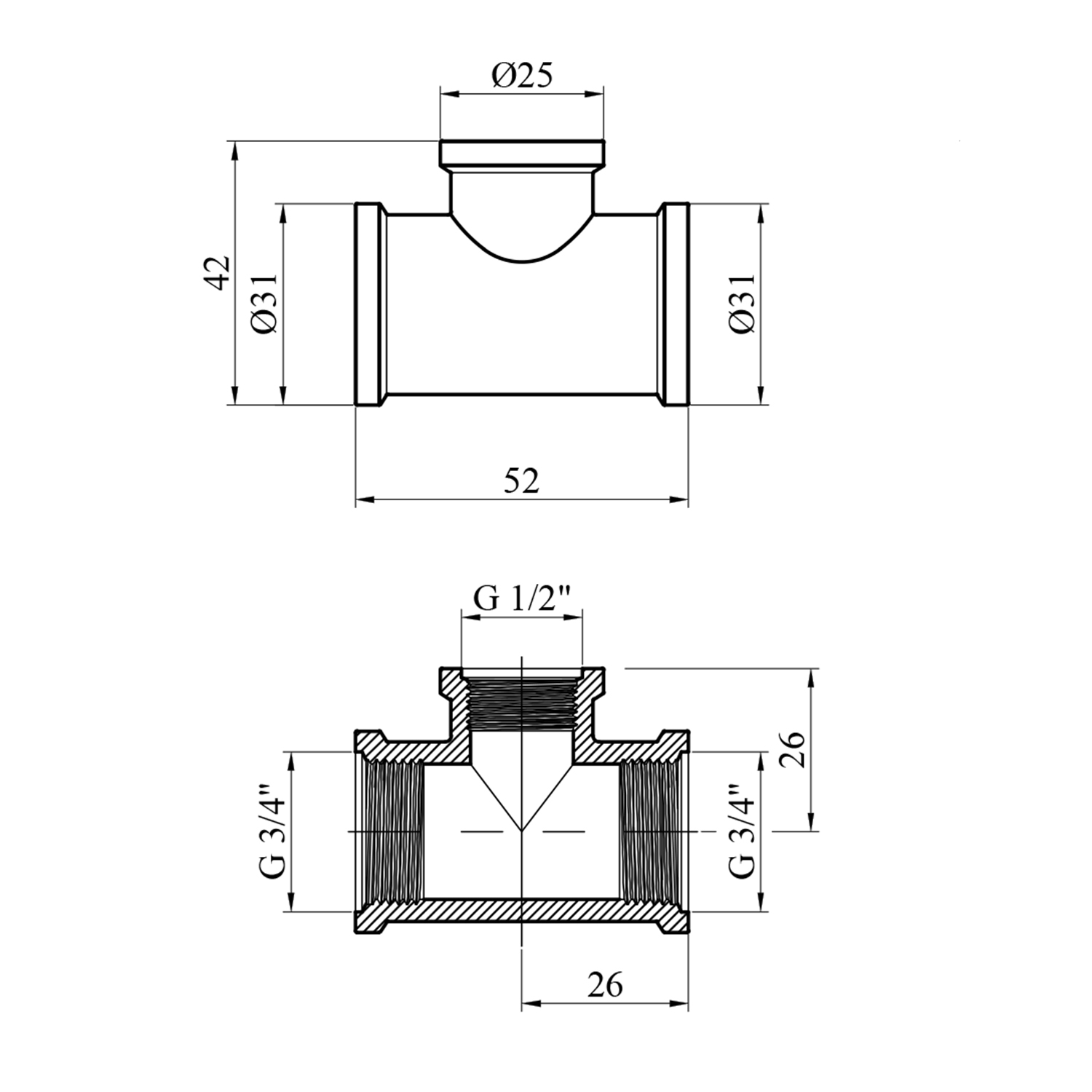 Описание Тройник усиленный LexLine 3/4х1/2х3/4 ВВВ латунный УК0212-В код товару CV016019