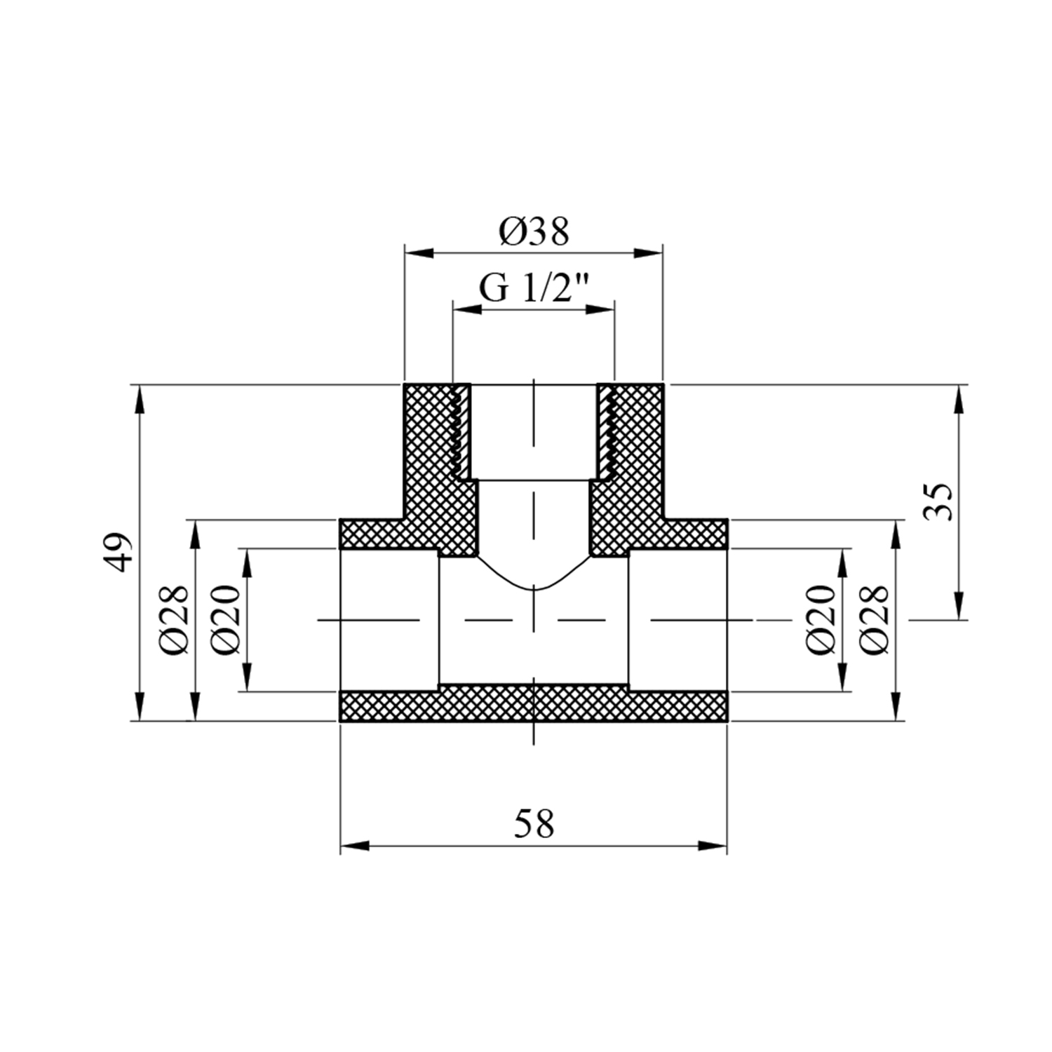 Тройник PPR GrandiTherm 20х1/2 РВ CV011932