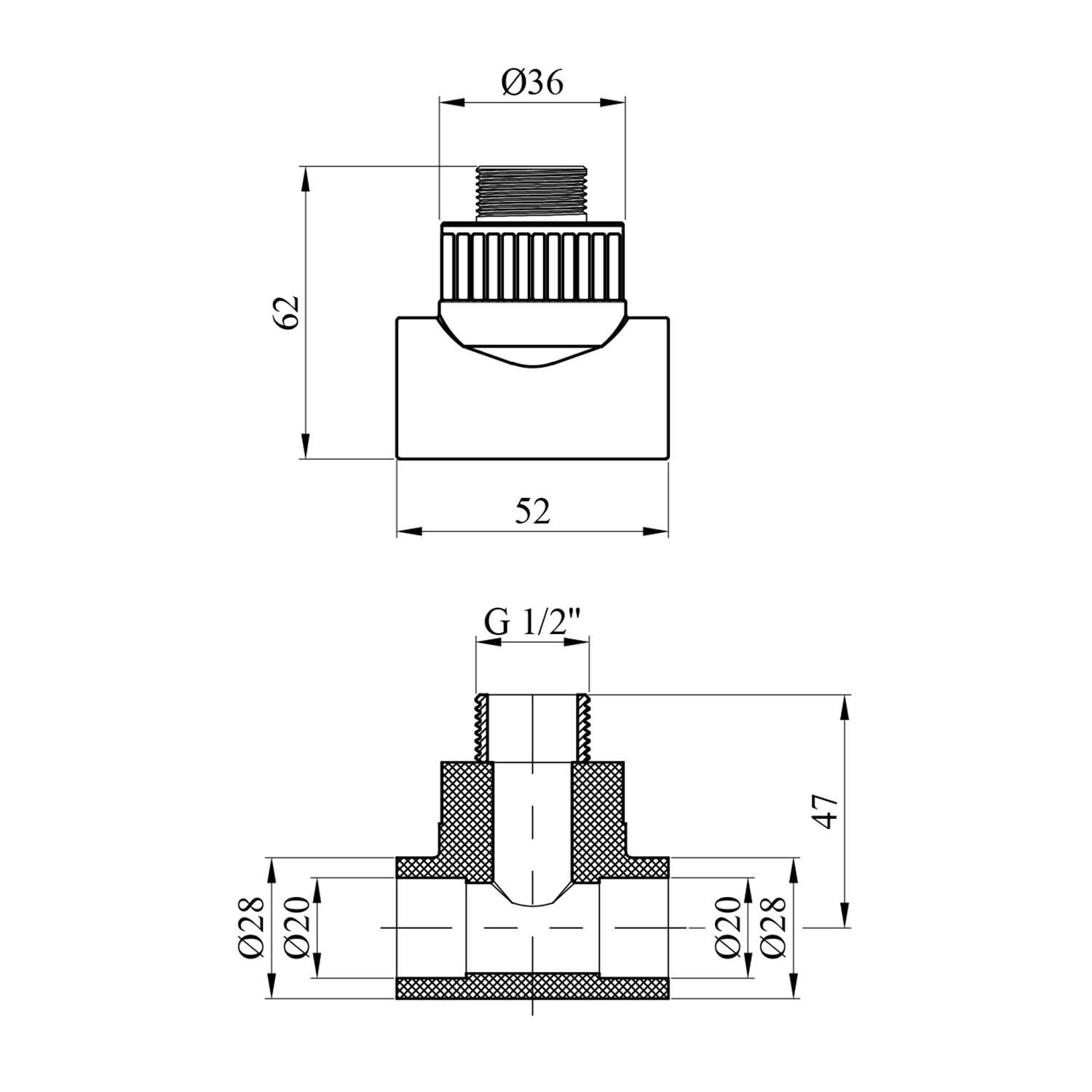 Тройник PPR Rozma 20x1/2 РН