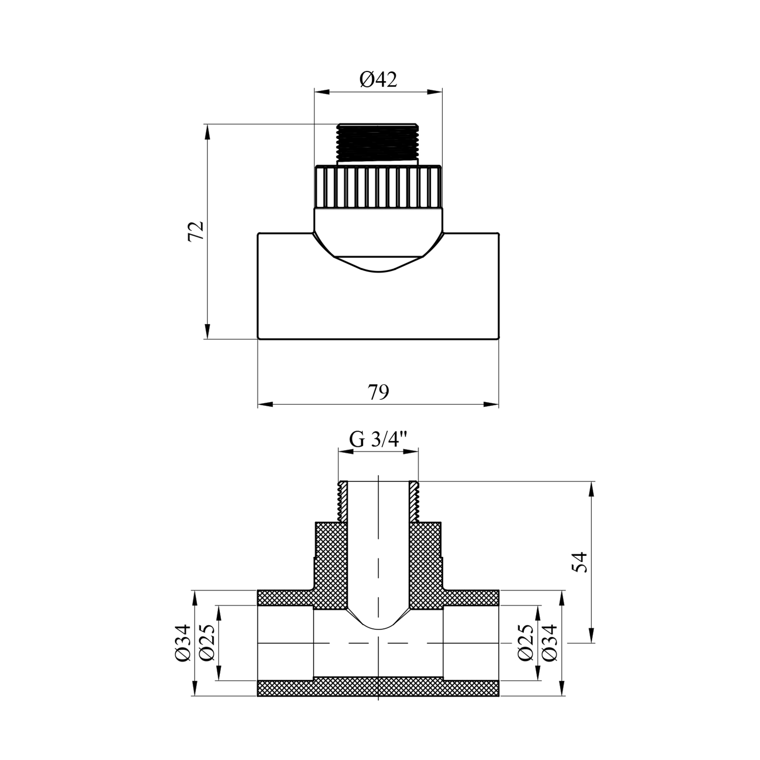 Характеристики Тройник PPR Rozma 25x3/4" РН код товару CV018117