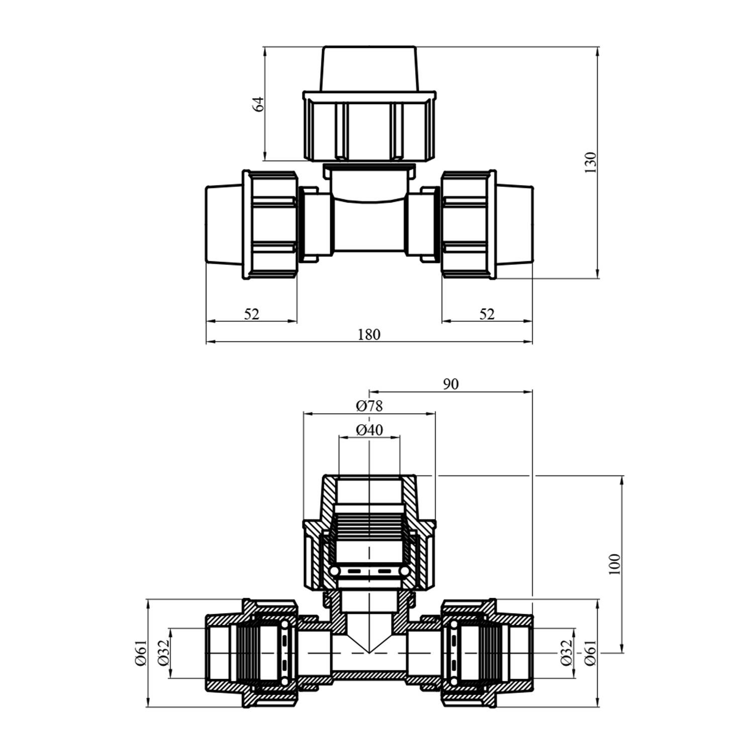 Характеристики Редукционный тройник ПЭ Rozma 32x40x32 мм код товару CV023460