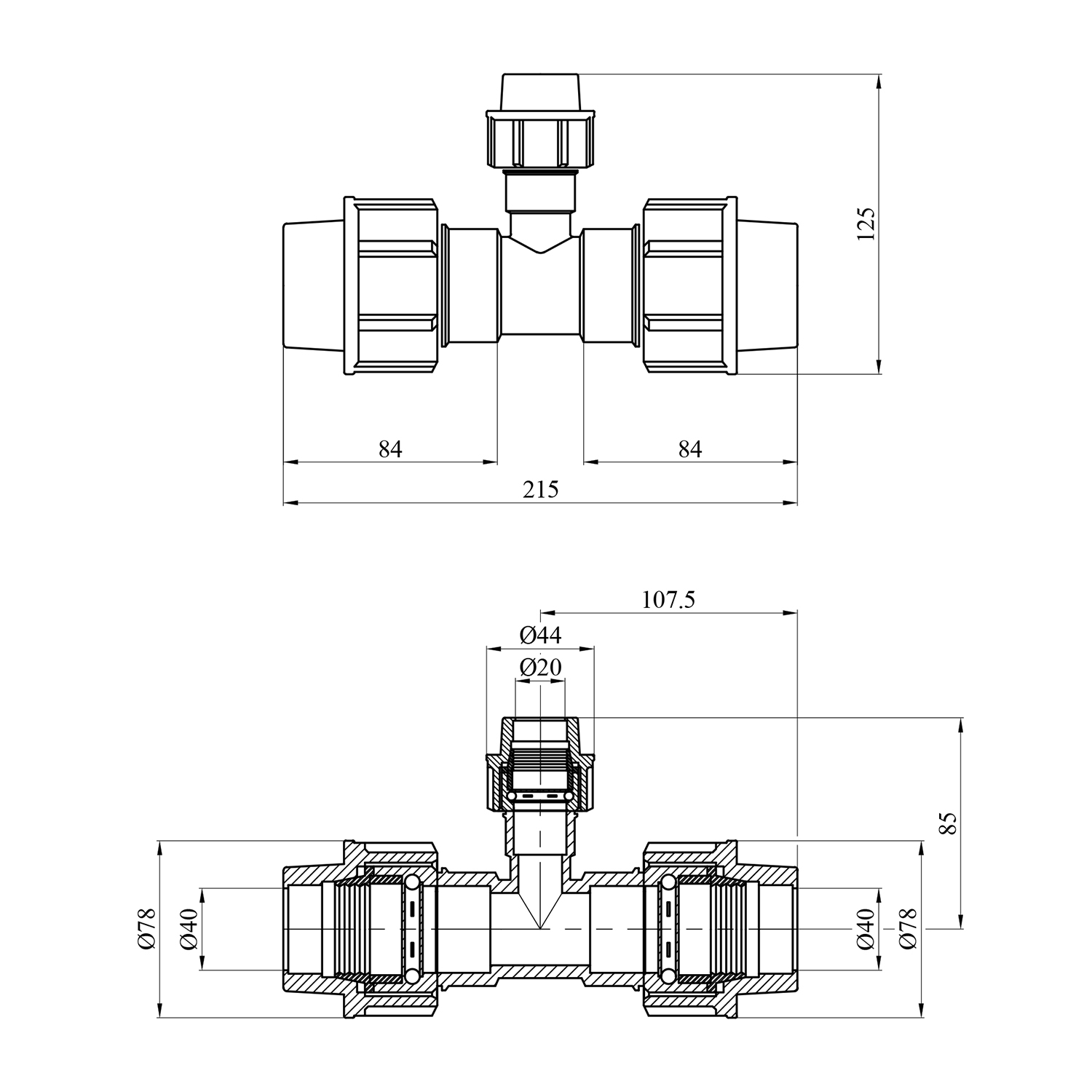 Характеристики Тройник редукционный ПЭ SantehPlast 40х20х40 мм код товару CV019211
