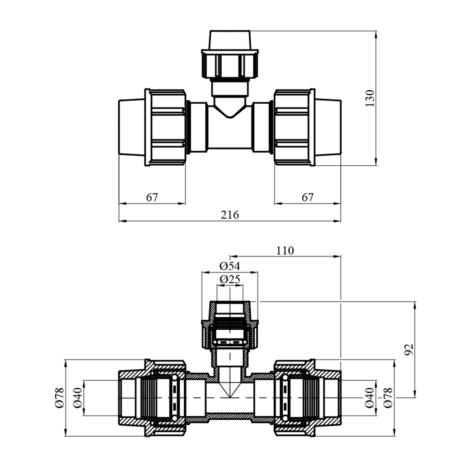 Характеристики Тройник редукционный ПЭ SantehPlast 40х25х40 мм код товару CV019621