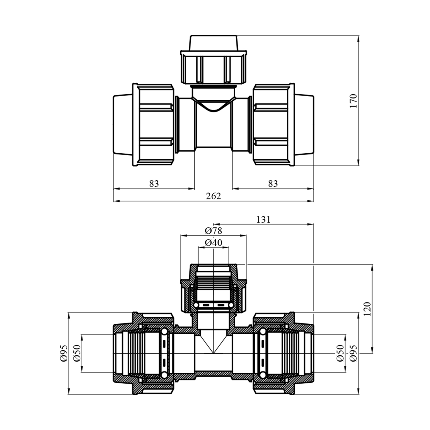 Характеристики Тройник редукционный ПЭ SantehPlast 50х40х50 мм код товару CV020241