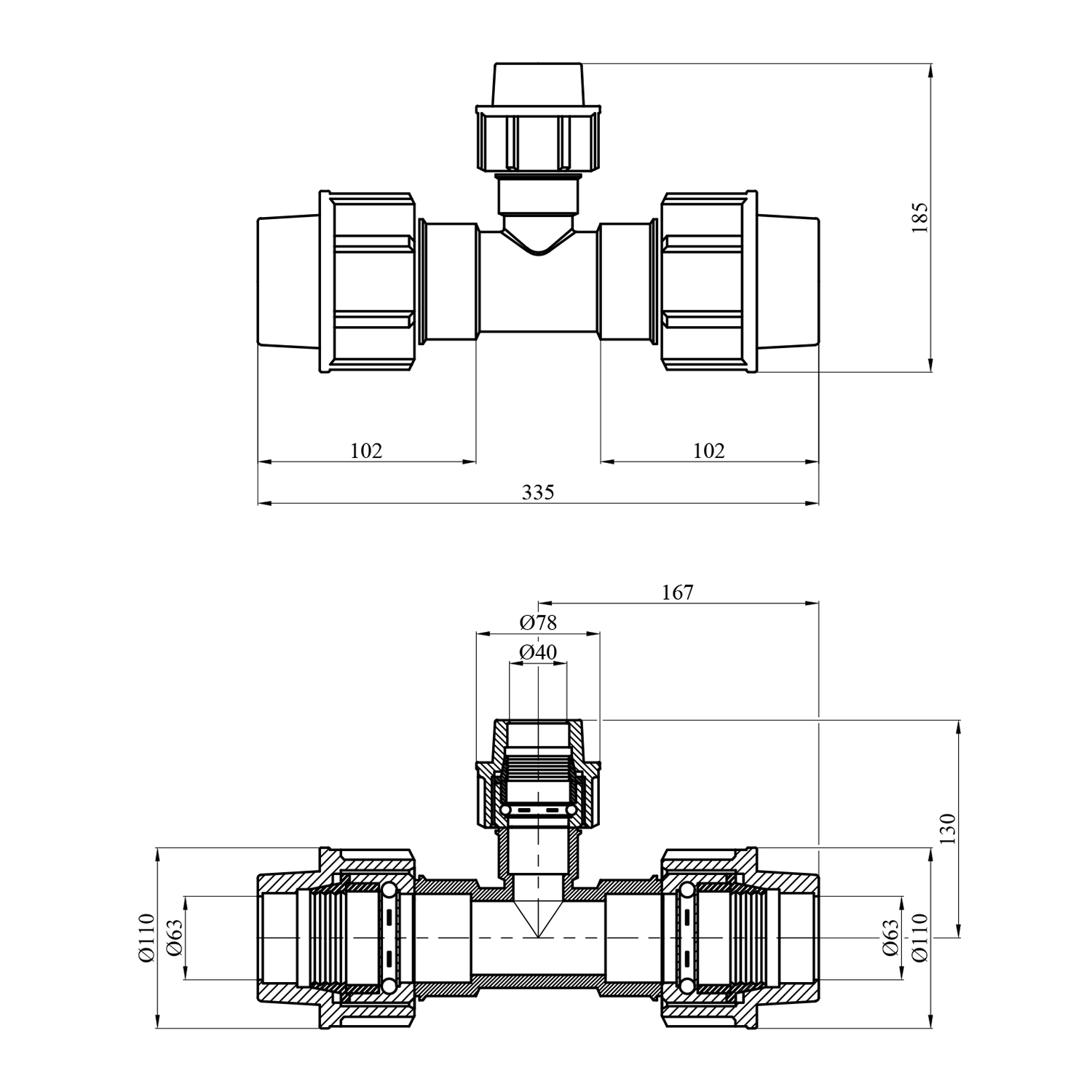 Описание Тройник редукционный ПЭ SantehPlast 63х40х63 мм код товару CV020530