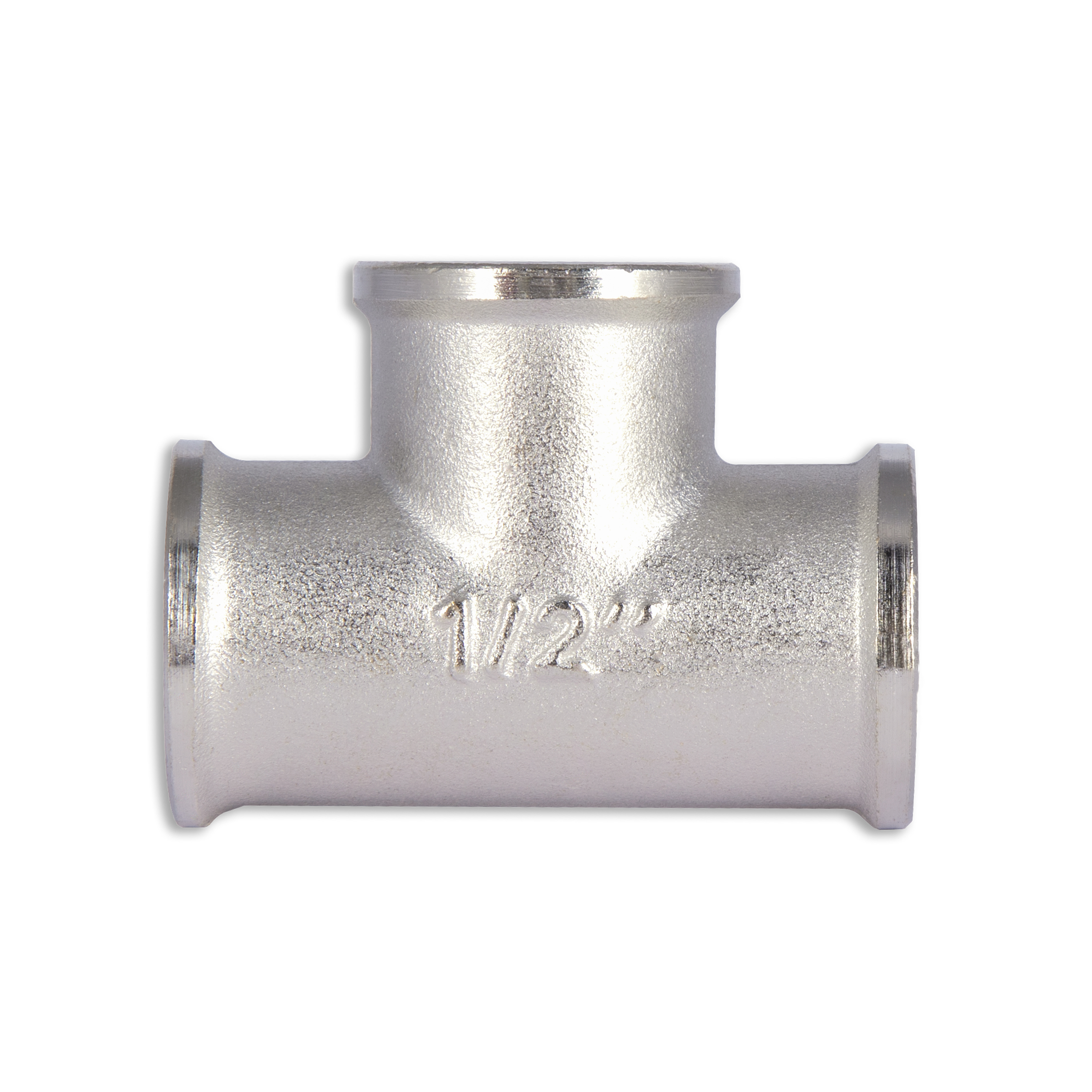 Тройник латунный SD Forte 1/2" ВВ с никелированным покрытием, применяют для присоединения труб к основной магистрали под углом 90 градусов, и представляет собой объединённые полые цилиндры из латуни с внутренними резьбами.