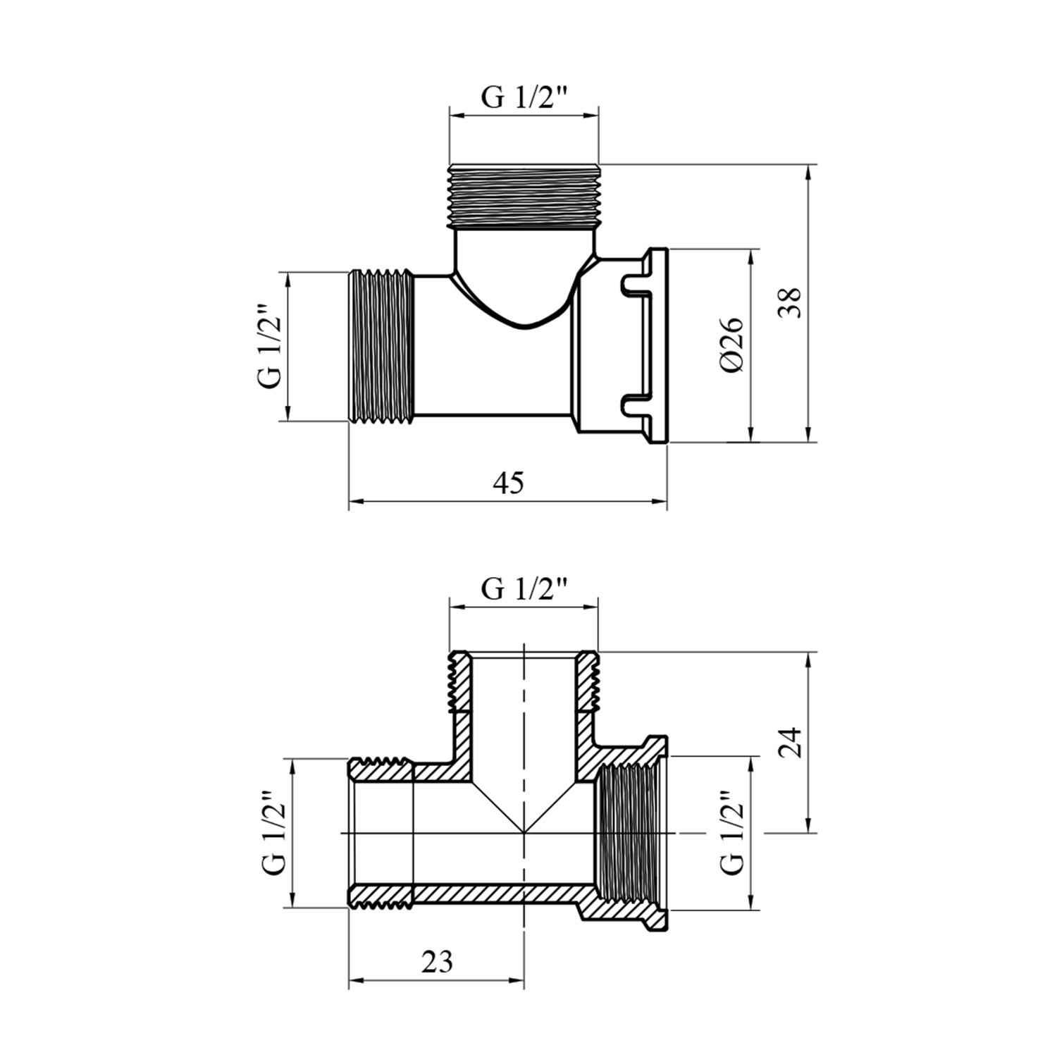 Характеристики Тройник STA 1/2 ННВ латунный код товару CV013165