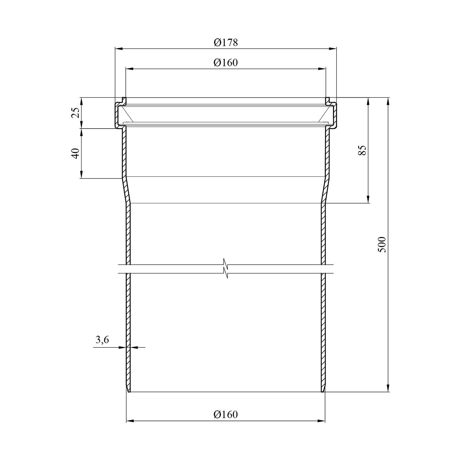 Описание Труба для наружной канализации Rozma SN2 160 мм, 500 мм, 3,6 мм код товару CV029018