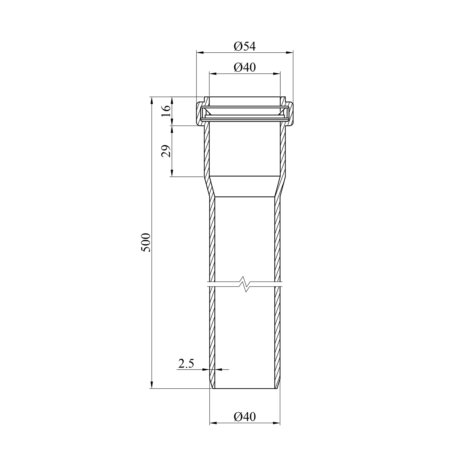 Описание Труба для внутренней канализации Rozma 40х500 мм код товару CV034259