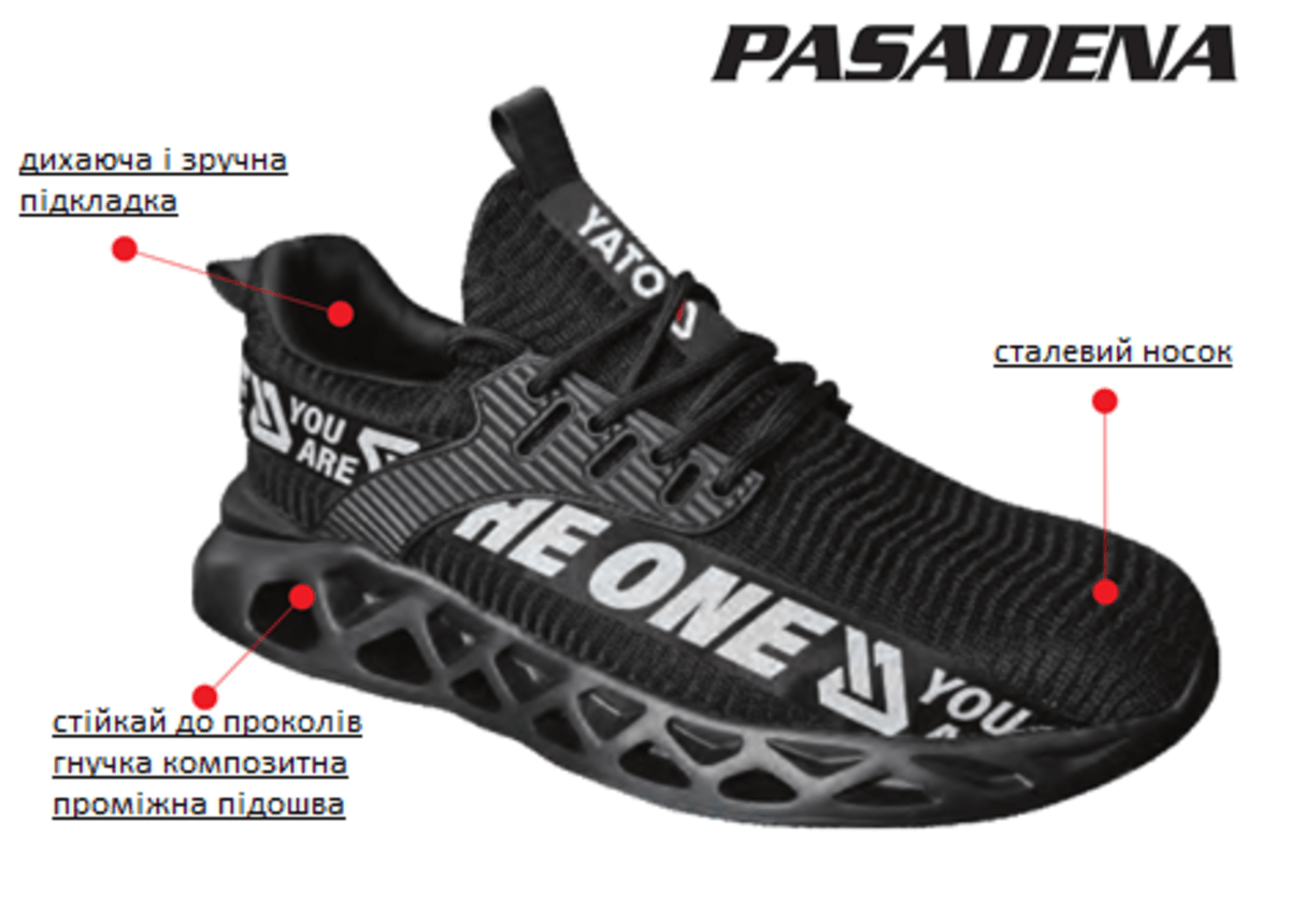 Характеристики Туфлі робочі нейлонові YATO PASADENA SB, розм. 41, з гумовою підошвою код товару YT-80682