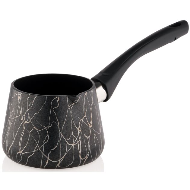 Варіння кави в турці – це справжній обряд для любителів цього напою. Із туркою ARDESTO BLACK MARS об’ємом 0,5 л можна щодня насолоджуватися ароматною кавою. Турку виготовлено з алюмінію – легкого матеріалу, вкритого гранітним протипригарним покриттям. Міцна бакелітова ручка подарує комфорт під час приготування ароматного напою. Посуд сумісний із газовими, електричними та склокерамічними плитами. Виробник не рекомендує мити в посудомийній машині.