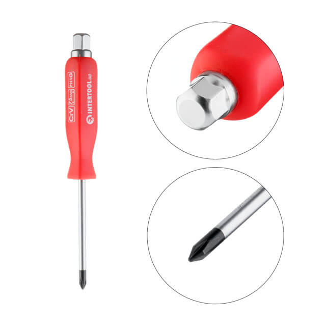 Описание Ударная отвертка PH1x75 мм, Cr-V INTERTOOL HT-0486 код товару HT-0486