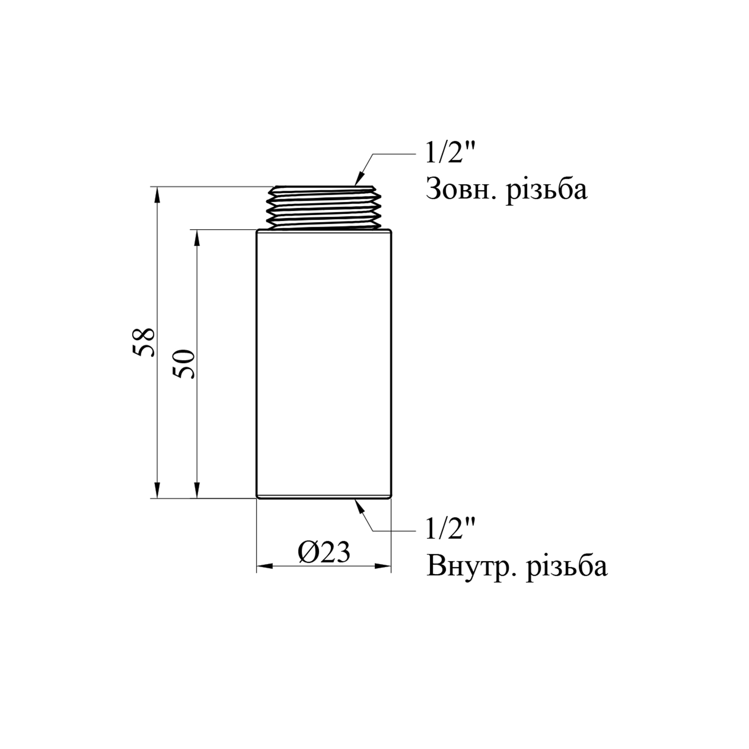 Характеристики Удлинитель STA 1/2 ВН, L=50 мм, латунь код товару CV013615