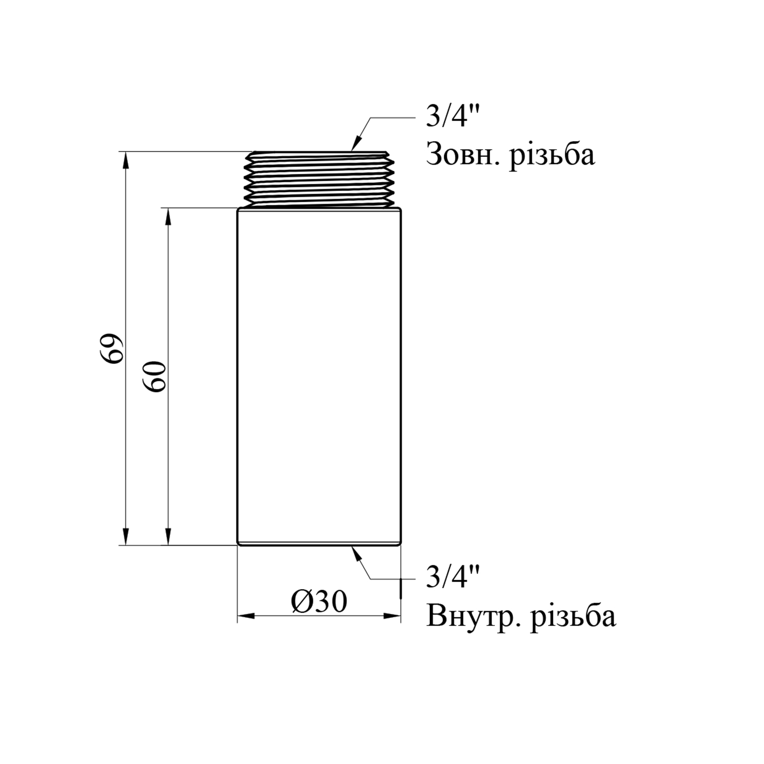 Характеристики Удлинитель STA 3/4 ВН, L=60 мм, латунь код товару CV016793