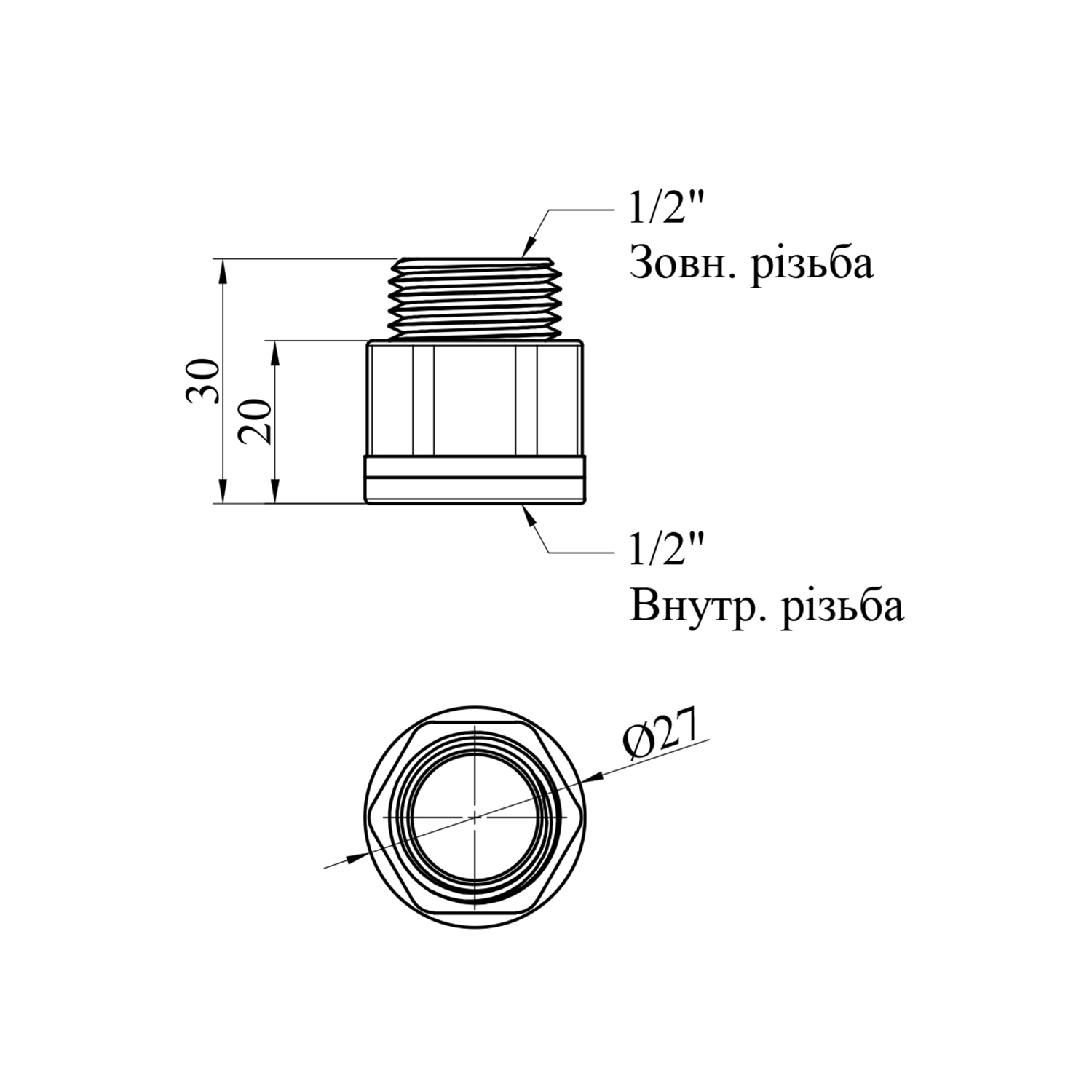 Характеристики Удлинитель LexLine 1/2'' ВН никелированный, L=20 мм НК0601-20Вн код товару CV030892