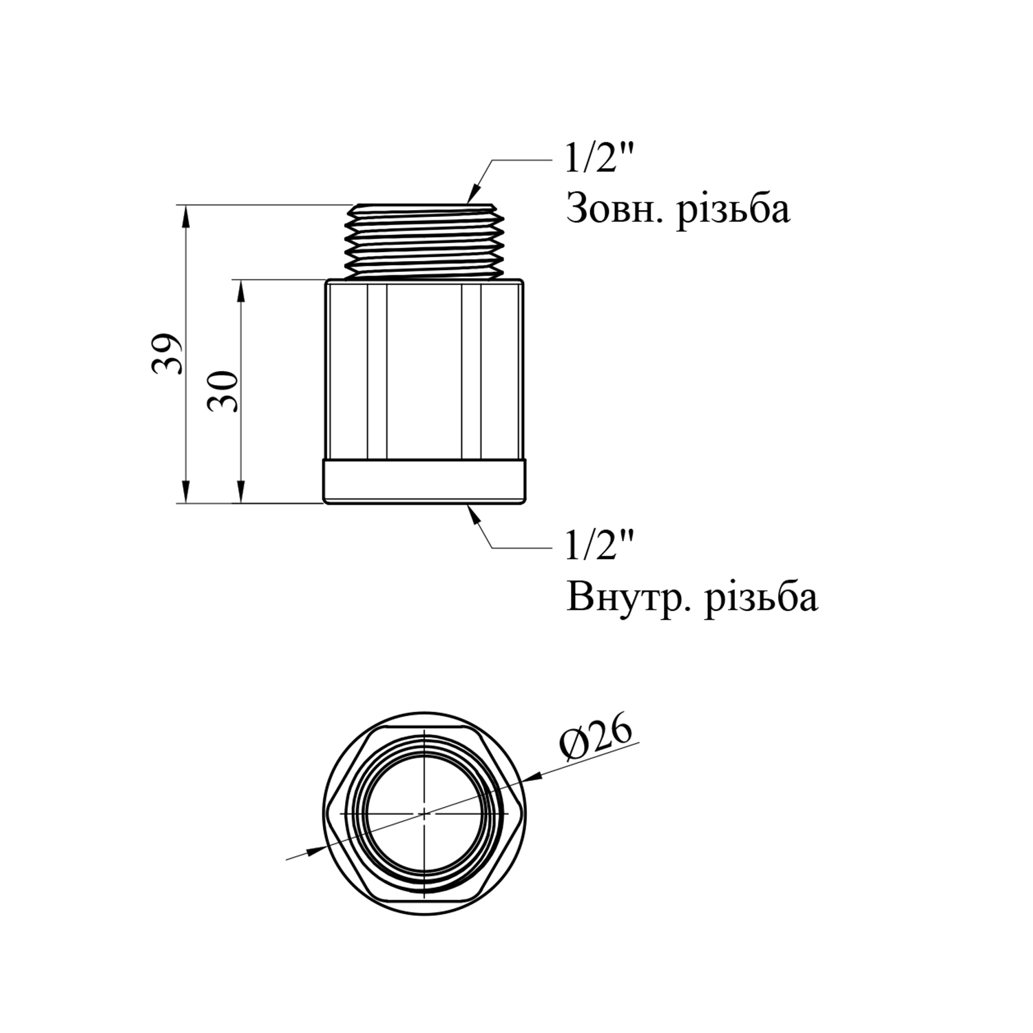 Характеристики Удлинитель LexLine 1/2 ВН, L=30 мм, латунный УК0601-В30 код товару CV029063