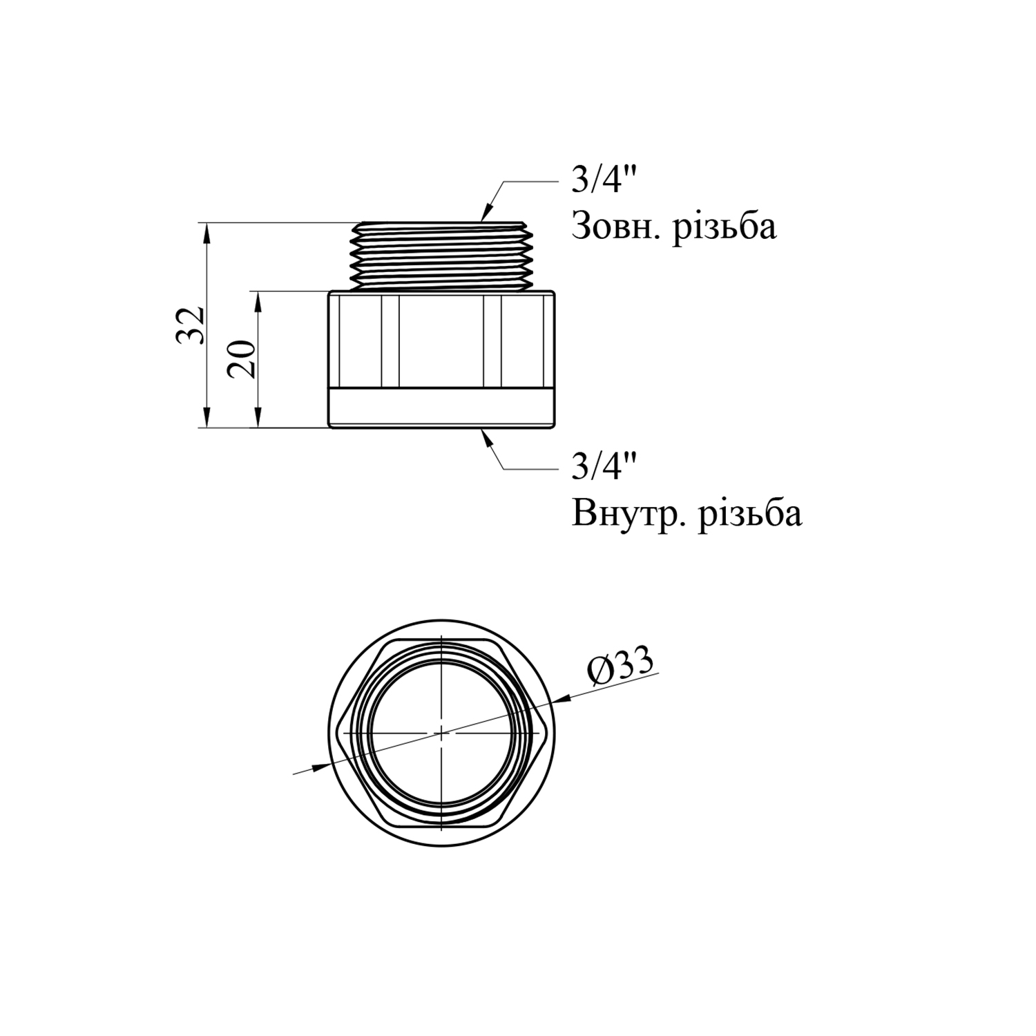 Характеристики Удлинитель LexLine 3/4 ВН, никелированный, L=20 мм НК0609-20-Вн код товару CV029925