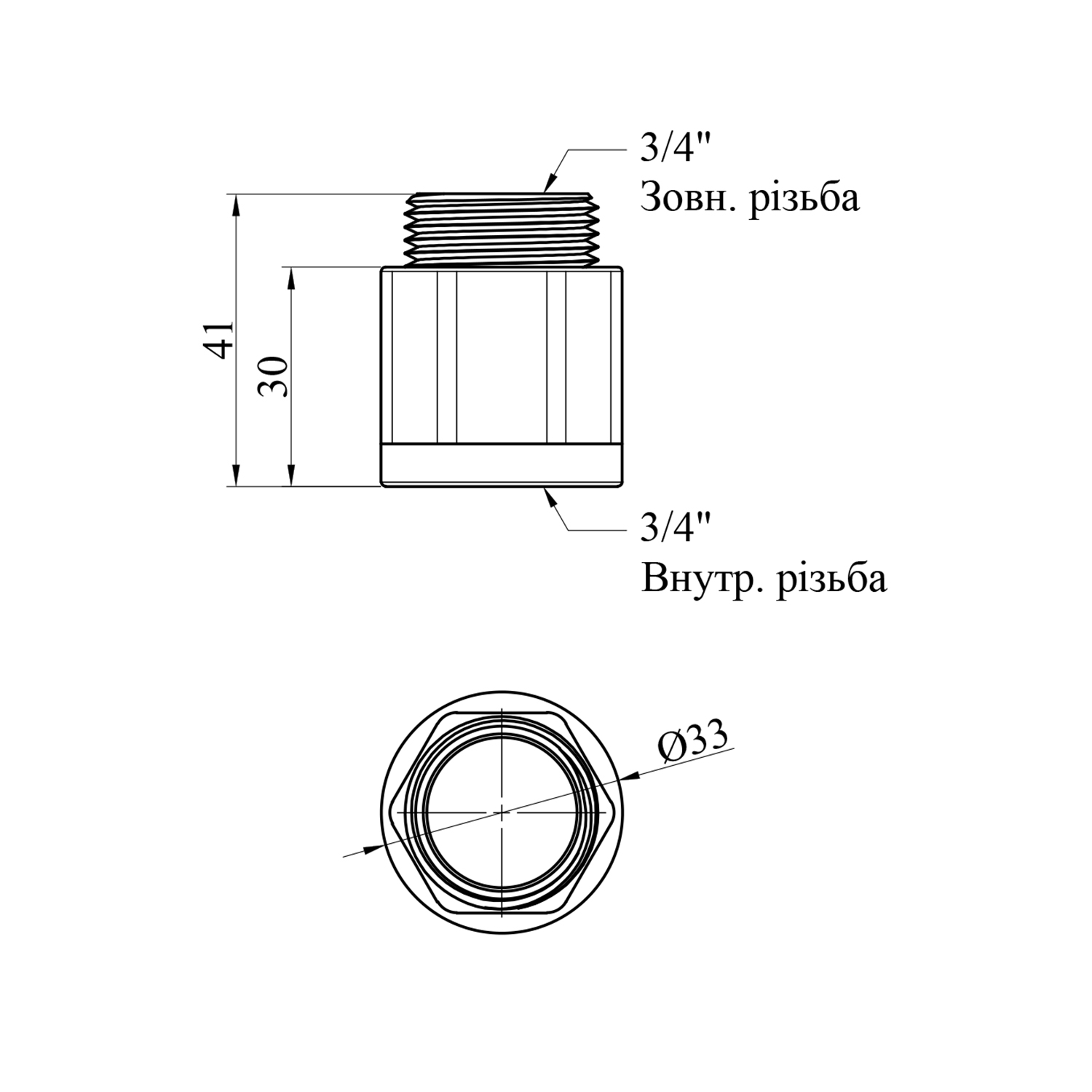 Характеристики Удлинитель LexLine 3/4 ВН никелированный, L=30 мм НК0609-30-Вн код товару CV030309
