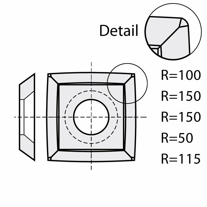 Характеристики Ніж HM 15,0x15,0x2,5мм HC05 d=6,4 <30 R=150 код товару 915205