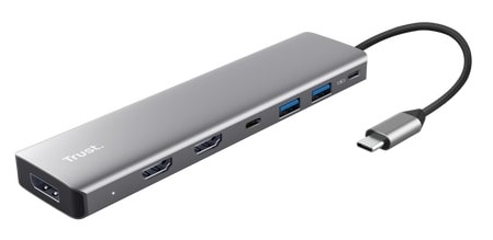 Характеристики Адаптер Trust Dalyx 7in1 USB-C> 2xUSB-А 3.2/2xUSB-С/2xHDMI/Display Port, Алюміній, 0.16м, Сірий код товару 25661_TRUST