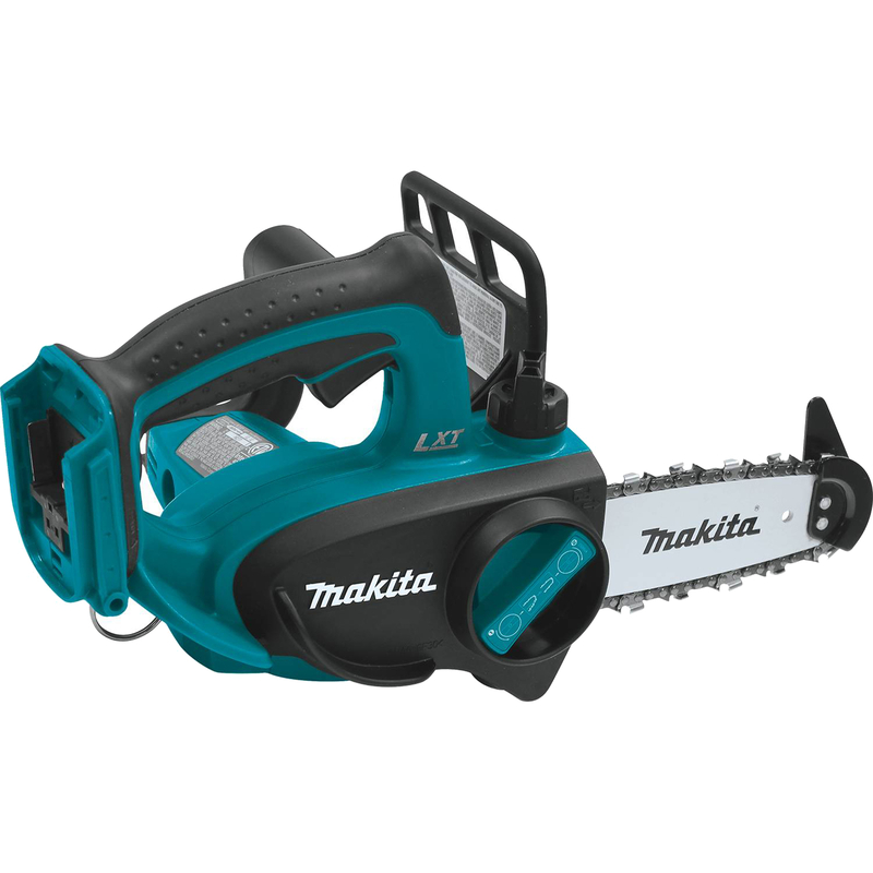 Makita DUC122Z - це акумуляторна ланцюгова пилка, призначена для розпилювання деревини. Гумові вставки на ручках гасять вібрацію і дозволяють збільшити контроль над пилкою. Пила оснащена блокуванням від випадкового запуску. При вибігу ланцюга спрацьовує аварійне гальмо (швидкість спрацьовування всього півсекунди). Система регулювання натягу ланцюга пилки Makita DUC122Z відрізняється простотою та дозволяє замінювати ланцюг без допомоги спеціальних інструментів.