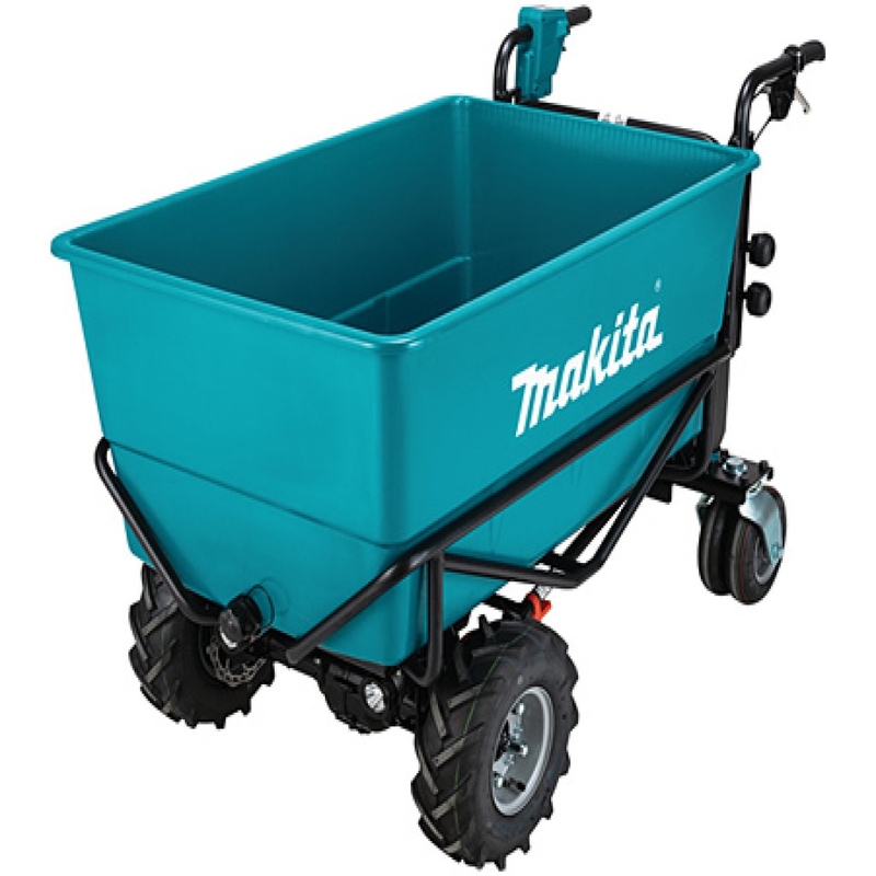 Опис: Акумуляторна самохідна тачка MAKITA DCU605ZАкумуляторний візок Makita DCU605Z – це потужний інструмент, створений для максимально ефективного транспортування вантажів на будівництві, в саду або господарстві. Працює на системі 18В X2 LXT (36В), забезпечуючи потужність для перевезення до 300 кг навіть на нерівних поверхнях. Візок оснащений двома швидкостями, функцією реверсу і яскравим LED підсвічуванням для роботи у темряві. Завдяки міцній рамі та ергономічному дизайну, DCU605Z пропонує простоту у використанні, підвищену маневреність і надійність для будь-яких професійних завдань.Комплект поставки:Зверніть увагу, акумулятор і зарядний пристрій в комплект поставки не входять.Переваги для користувача:- безщітковий електричний двигун забезпечує більш ефективну роботу та продовжує термін служби пристрою- працює на двох Li-ion LXT акумуляторах Makita LXT напругою 36 В- три швидкісних режими вперед (1.5, 3, 5 км/год) та один назад (1 км/год)- регулювання висоти керма дозволяє встановити кермо в зручне положення- чотири міцні колеса - стійкість і маневреність при пересуванні по нерівній поверхні- захищений від бризок води з усіх боків (ступінь захисту IPX4)- обладнаний світлодіодним ліхтарем червоного кольору позаду та двома світлодіодними фарами спереду
