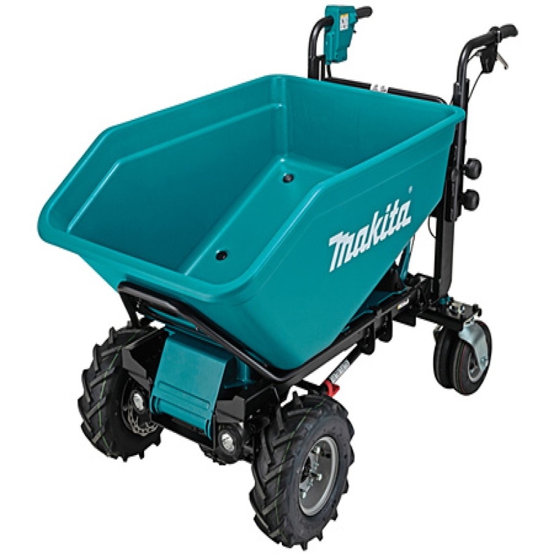 Опис: Акумуляторна самохідна тачка MAKITA DCU602ZАкумуляторний візок Makita DCU602Z – це інноваційне рішення для транспортування вантажів на будівельних майданчиках, у саду та господарстві. Працюючи на системі 18В X2 LXT (36В), DCU602Z легко перевозить до 300 кг навіть на нерівному рельєфі. Завдяки двом швидкісним режимам, функції зворотнього ходу та яскравому LED підсвічуванню, цей візок забезпечує зручність і безпеку роботи в будь-яких умовах. Ергономічна конструкція та міцна рама роблять його надійним помічником для професіоналів, допомагаючи ефективно впоратися з важкими завданнями.Комплект поставки:Зверніть увагу, акумулятор і зарядний пристрій в комплект поставки не входять.Переваги для користувача:- безщітковий електричний двигун забезпечує більш ефективну роботу та продовжує термін служби пристрою- працює на двох Li-ion LXT акумуляторах Makita LXT напругою 36 В- три швидкісних режими вперед (1.5, 3, 5 км/год) та один назад (1 км/год)- регулювання висоти керма дозволяє встановити кермо в зручне положення- чотири міцні колеса - стійкість і маневреність при пересуванні по нерівній поверхні- захищений від бризок води з усіх боків (ступінь захисту IPX4)- обладнаний світлодіодним ліхтарем червоного кольору позаду та двома світлодіодними фарами спереду