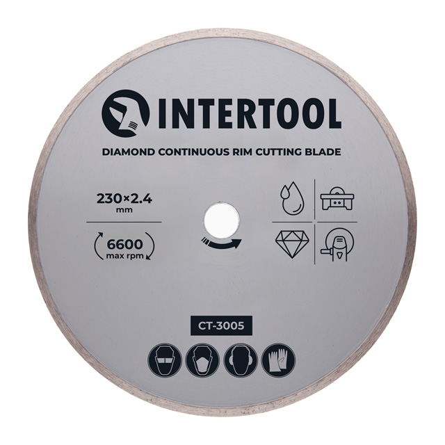Опис Диск відрізний алмазний по плитці, зі сплошною кромкою, 230 мм, 16-18% INTERTOOL CT-3005 код товару CT-3005
