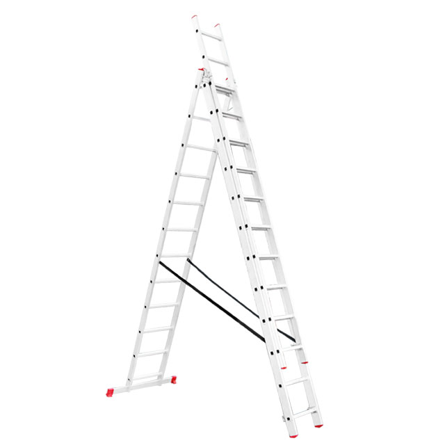 Опис Лестниця алюмінієва 3-х секційна універсальна розкладна 3x12 ступ. 7,6 м INTERTOOL LT-0312 код товару LT-0312
