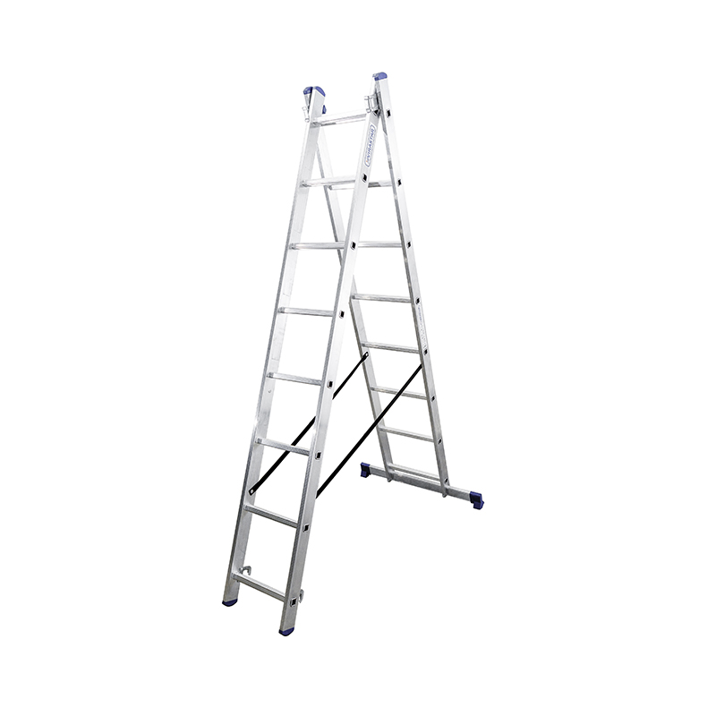 - алюмінієва двосекційна драбина 2x8 сходинок DUOMAX VIRASTAR має декілька робочих положень;