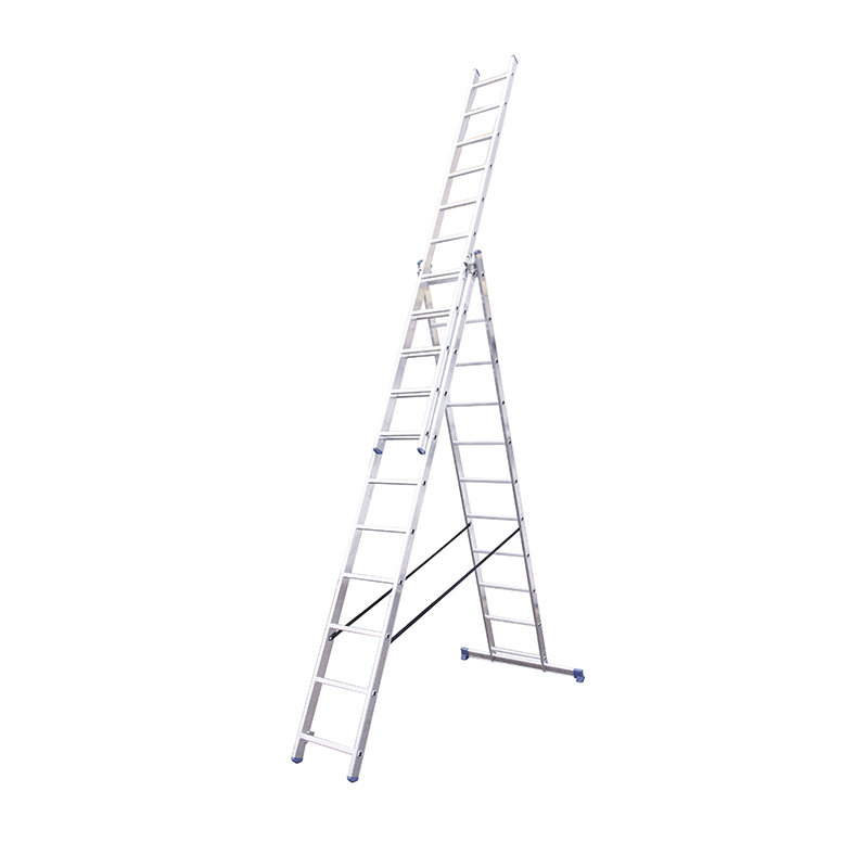 - алюмінієва трисекційна драбина 3х11 сходинок TRIOMAX VIRASTAR може розкладатися в: