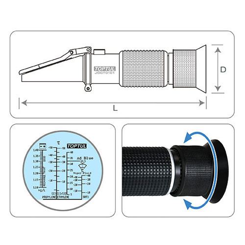 Опис Автомобільний рефрактометр 4-в-1 (антифриз, електроліт, омивач, AdBlue) TOPTUL JDCT0101 код товару JDCT0101