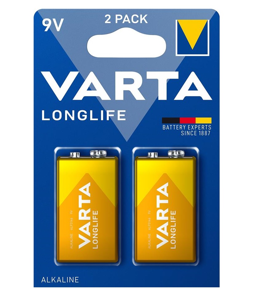 Опис Батарейка Varta Longlife лужна 6LR61(6LF22, MN1604, MX1604, Крона) блістер, 2 шт код товару 04122101412