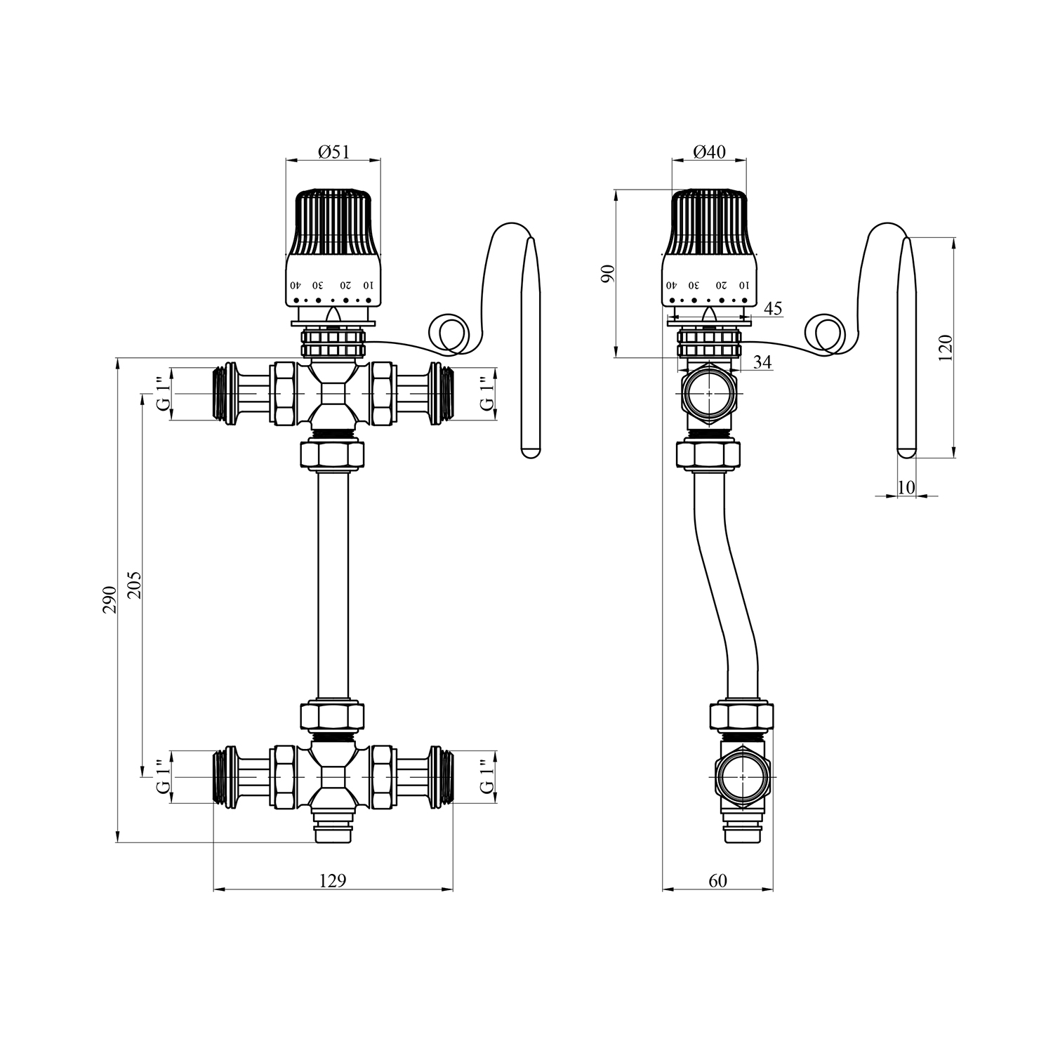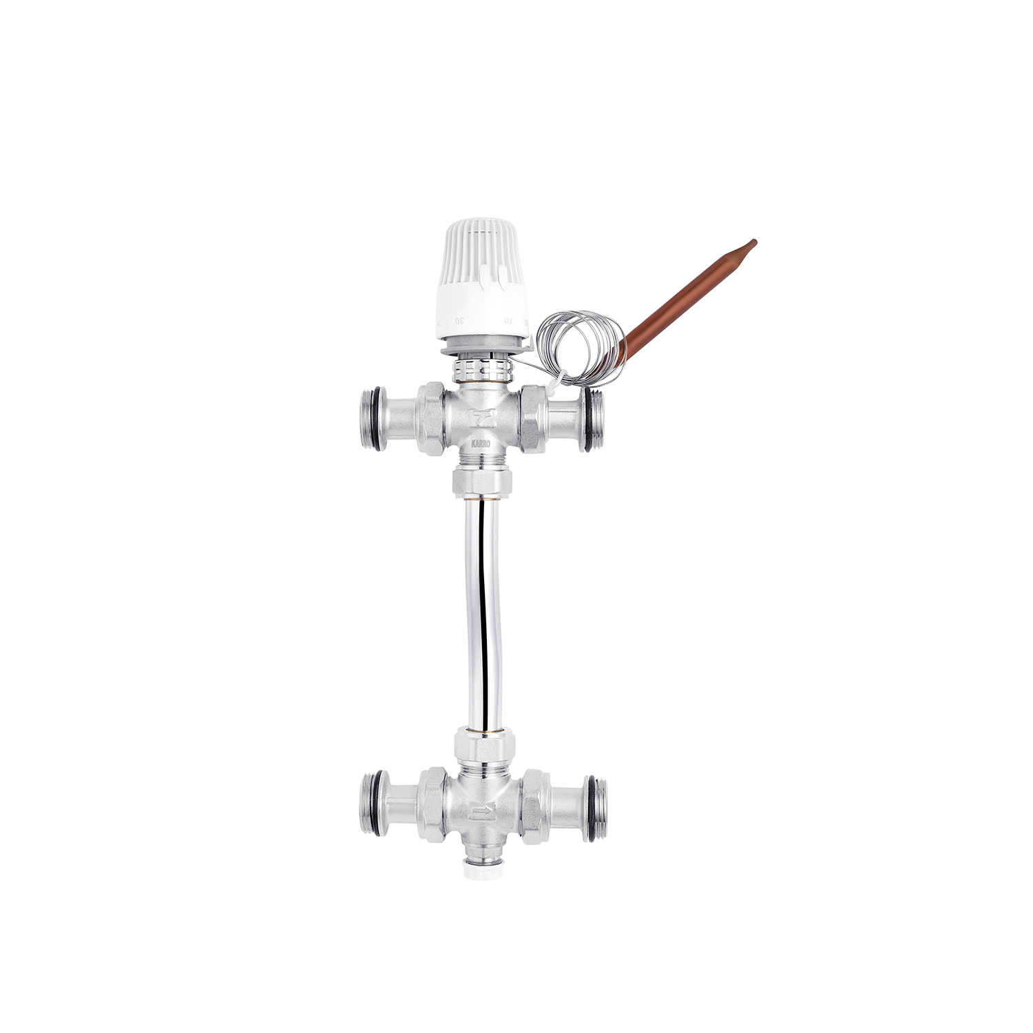 Байпас для коллекторной группы, трехходовой клапан, термоголовка с выносным датчиком, сальниковые уплотнители EPDM.