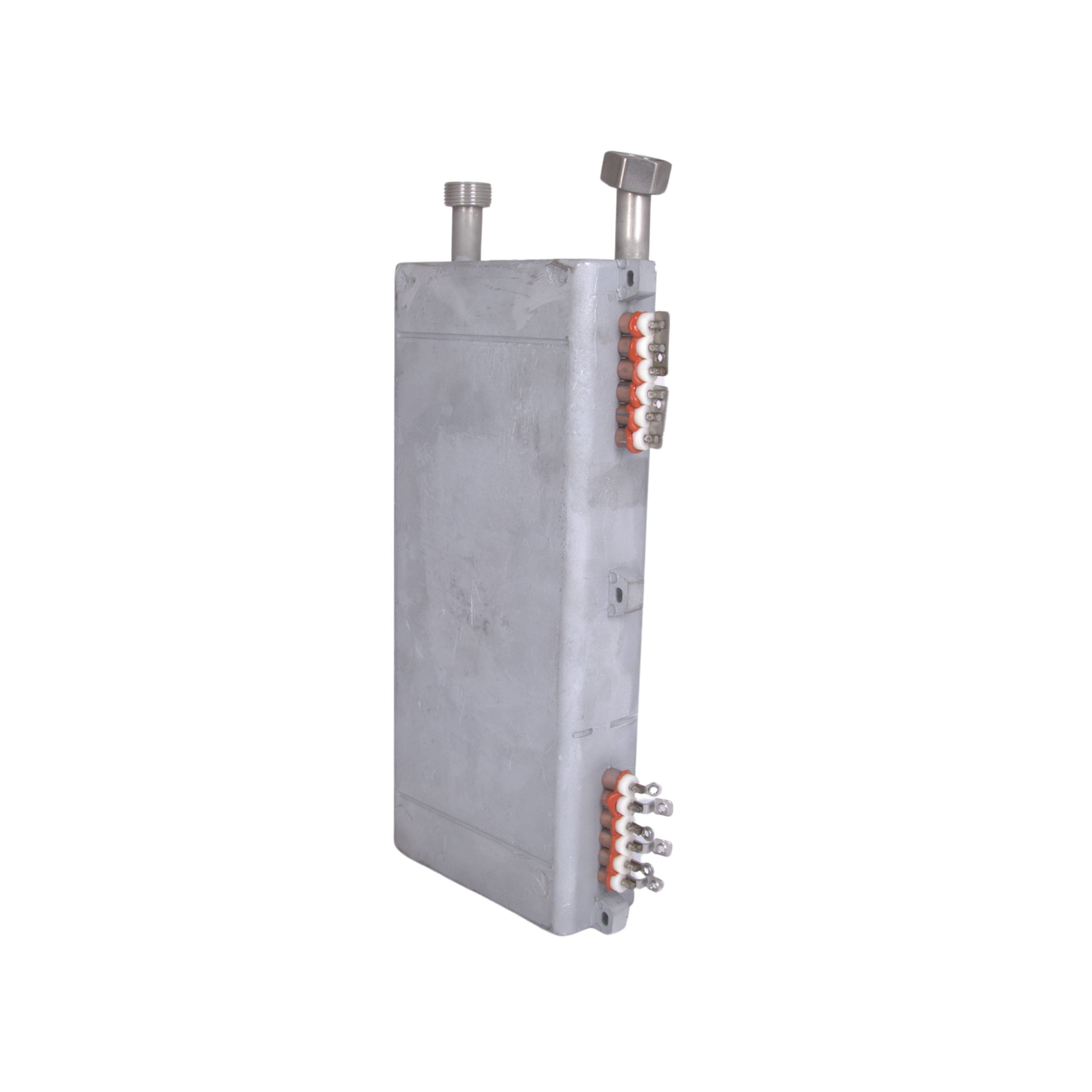 Блок ТЕН предназначен для нагрева теплоносителя до заданнной температуры. Представляет собой монолитный блок из алюминиевого сплава, в которм расположены ТЭНы и трубки из нержавеющей стали, по которым течет теплоноситель. За счет конструкции обладает исключительной надежностью.