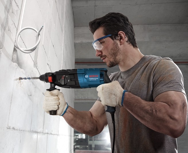 Перфоратор Bosch GBH 240 + ключовий патрон 0.611.272.104 забезпечує високу швидкість свердління завдяки оптимізованому механізму. Функціонує в трьох режимах: свердління, буріння і довбання.